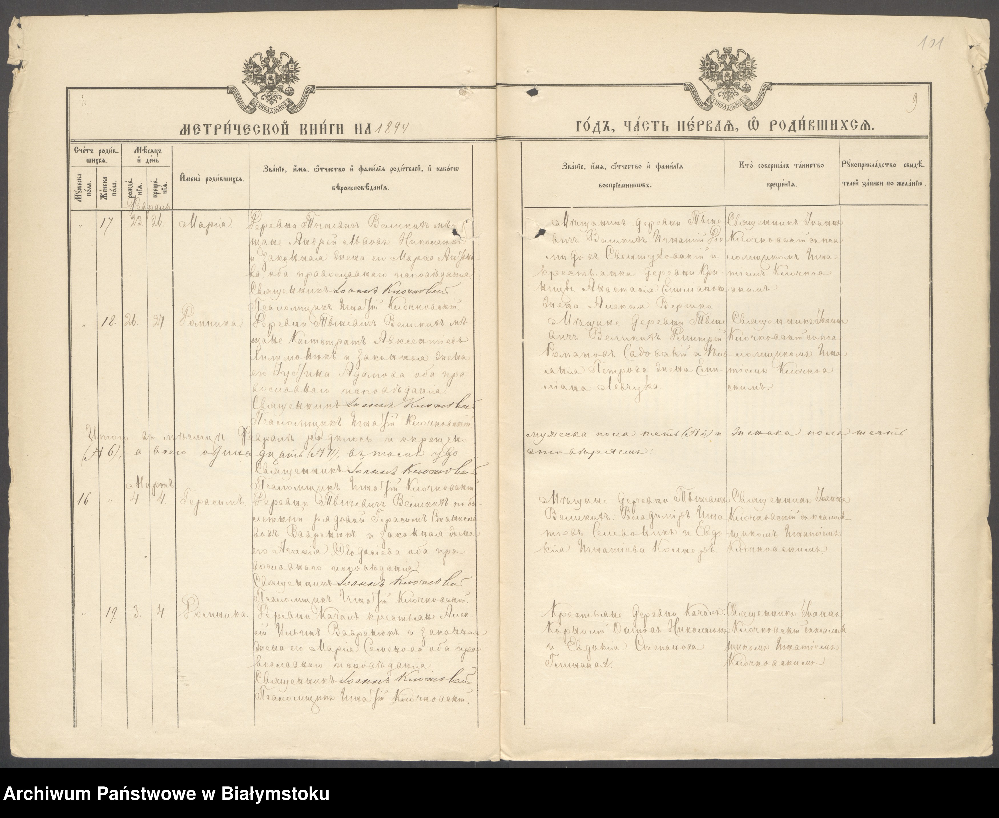 Nr aktu: 16 Data: Urodzony 4-go, ochrzczony 4-go (miesiąc jest ucięty, ale fragment "Ma..." u góry sugeruje marzec). Imię dziecka: Gierasim (ros. Герасимъ)ewalisowska pisze: pt 16 sty 2026, 12:17 Dzień Dobry,
