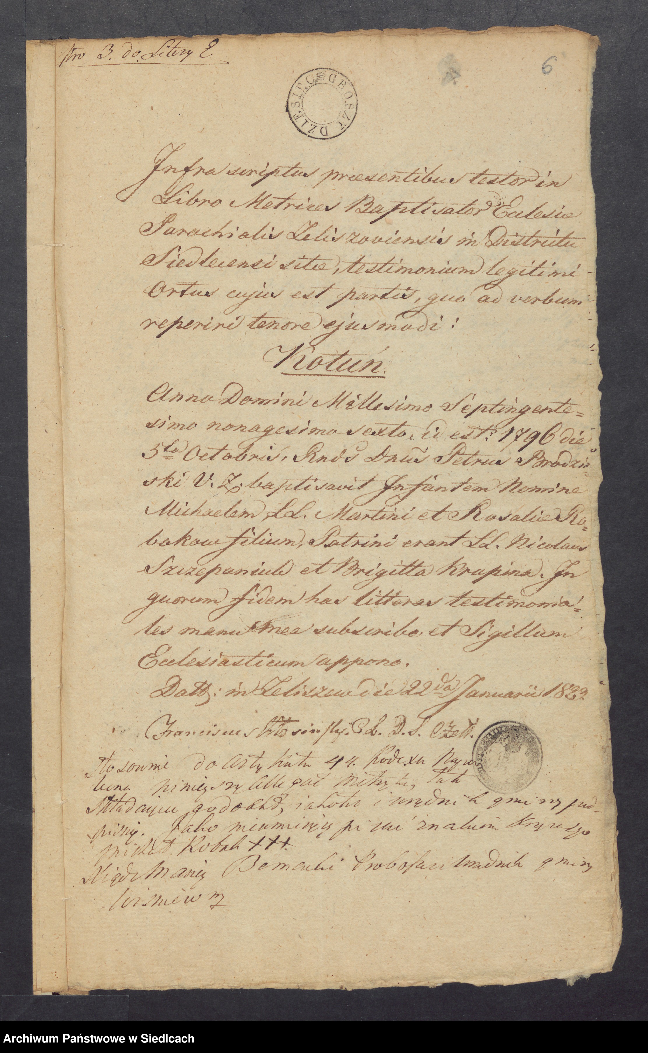 5 października 1796 r. Kotuń.