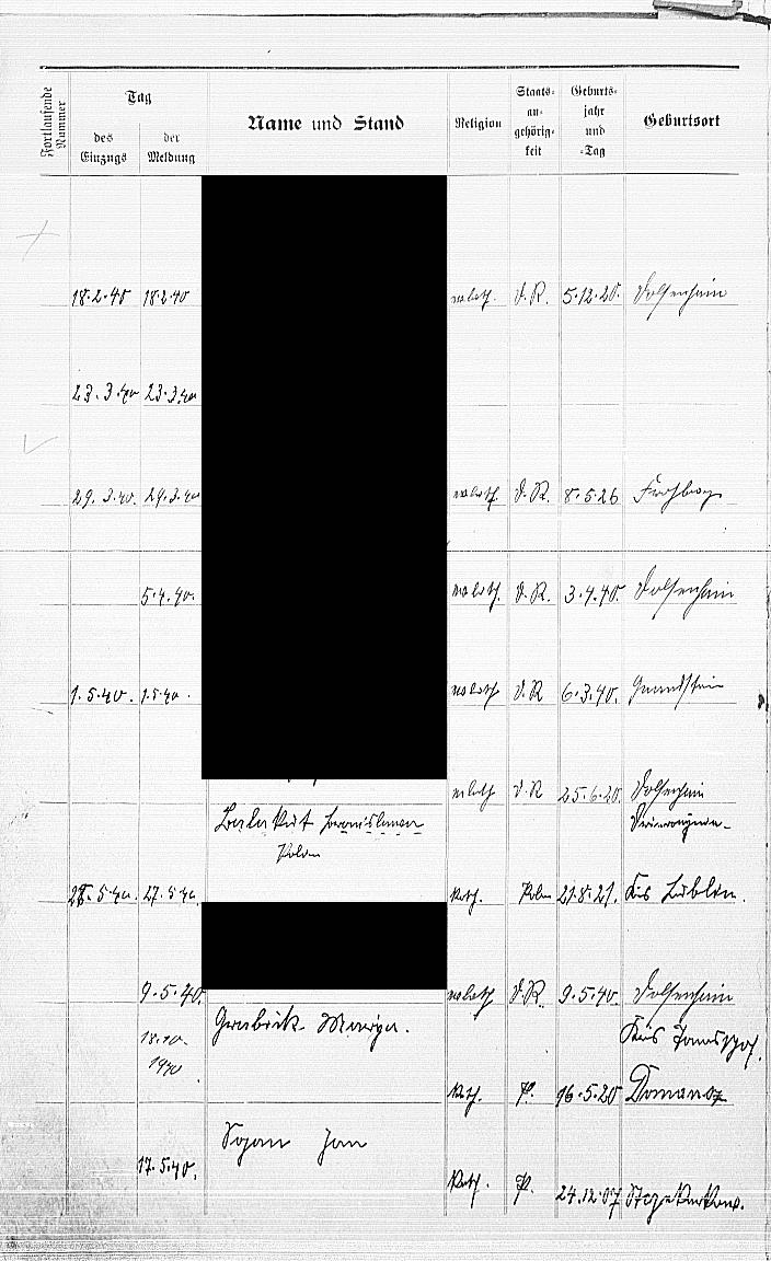 data zameldowania 25.05.40 ? do 27.05.1946. Zachowal sie tylko dokument z tego meldunku, pisany kurentem, trudny do odczytania i nie wnoszacy wiele.Byla to strefa rosyjska i wiekszosc dokumentow z tej strefy raczej przepadla.