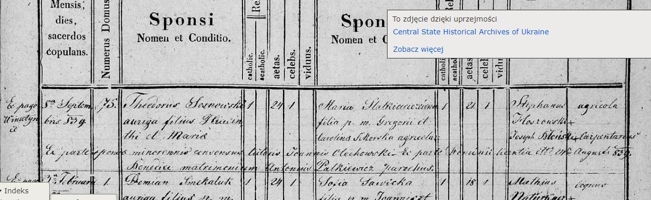 Odnalazłem Akt Małżeństwa zawarty w Winiatyńcach na obecnej Ukrainie Przodków z września z 1839 roku