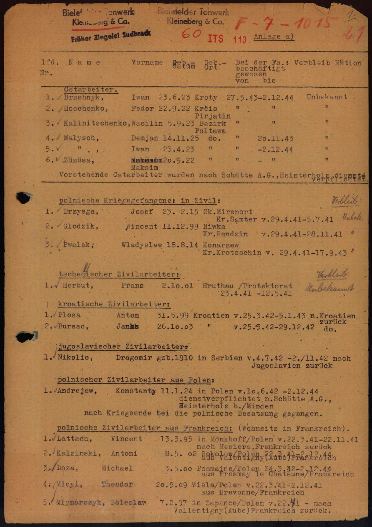 Wg dokumentacji z Arolsen Wincenty był robotnikiem cywilnym z Francji, który miał ostatnie miejsce zamieszkania w "Mesiers" - podano, że tam wrócił.