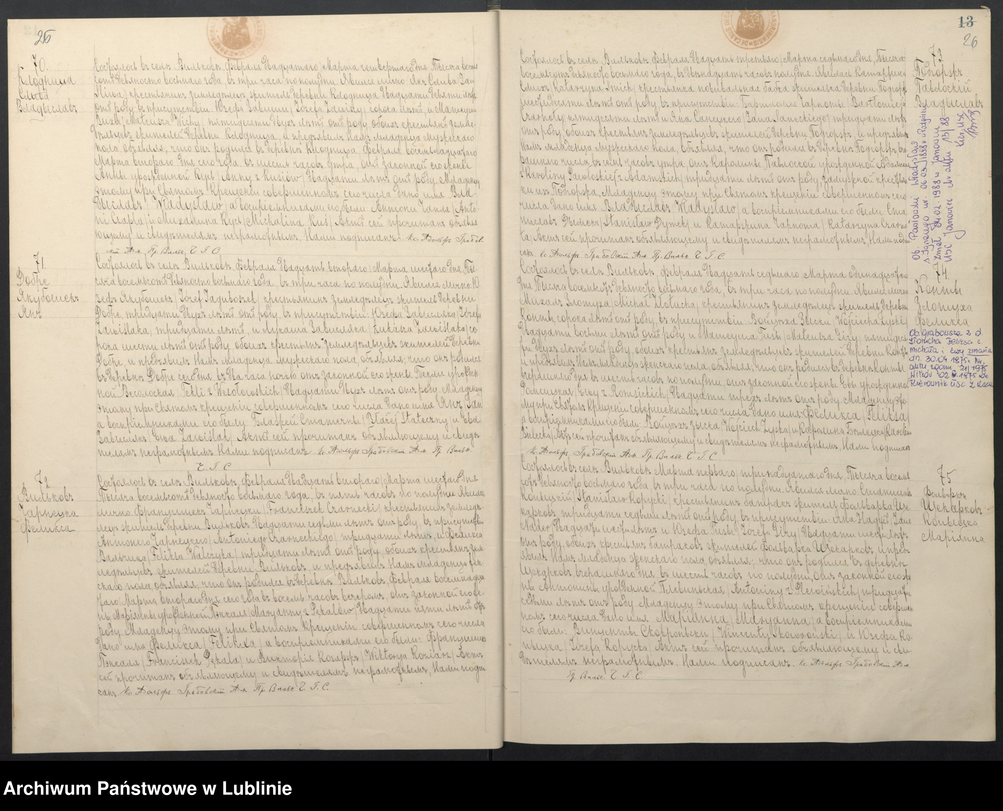 Świadkowie: Bartłomiej Czarnota 50 lat i Jan Sanecki 30 lat , rolnicy zamieszkali we wsi Podgórz