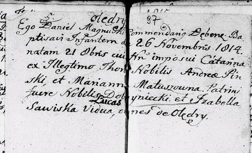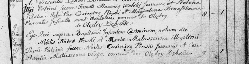 chrzestni: pracowici Adam Szaniawski; Katarzyna Komorowska; wszyscy ze wsi Tyniec