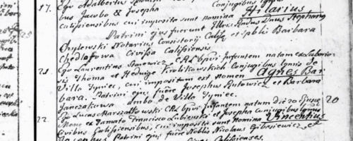 Bardzo proszę o tłumaczenie aktu urodzenia z roku 1792 i 1794 parafii św. Mikołaja w Kaliszu dotyczące Agnieszki i Józefa dzieci Tomasza Królika.