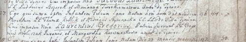 chrzestni: pracowici Grzegorz Króliczak, kawaler; Małgorzata Karczmarkowa; oboje z Tyńca