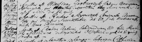 2 VIII 1813 został pochowany Roch Szymczak, półkmieć, mający 44 l., który umarł 30 VII opatrzony sakramentami, pozostawiwszy żonę Franciszkę.