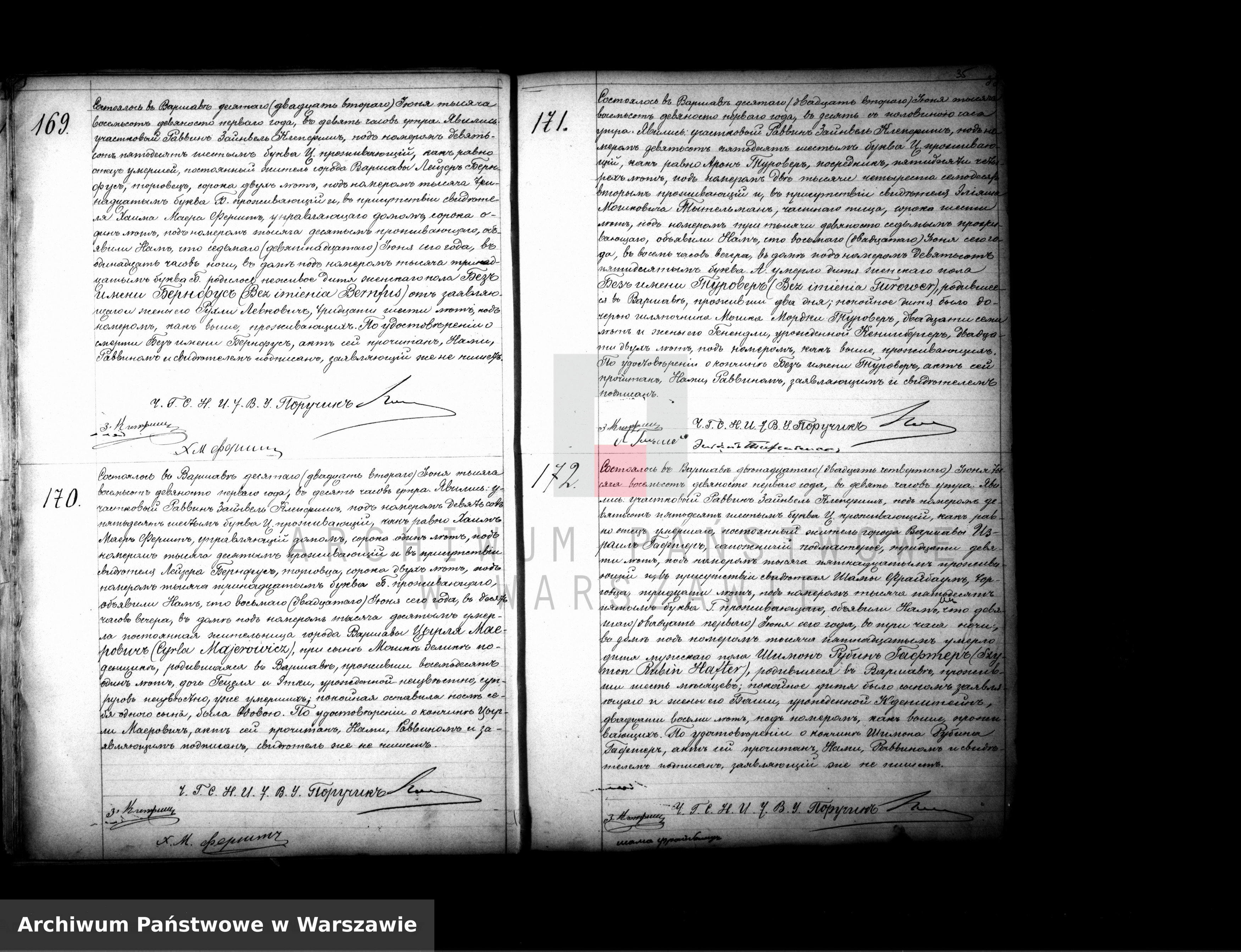 ew. Warszawa, mojżeszowe VII cyrkuł Z 1891/167 sygn 119 zespół 72/200