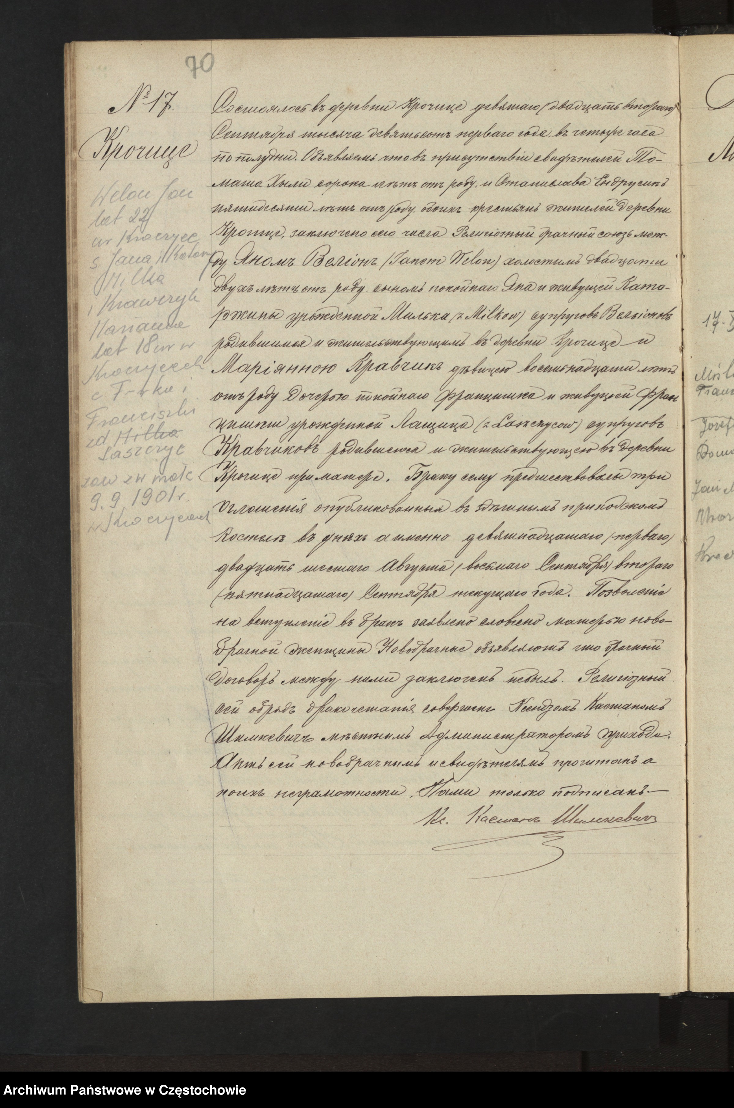 M1901/17 ślub 1901-09-22 Jan Welon lat 22 s. Jana Welon i Katarzyny zd. Milka, Ur:Kroczyce.