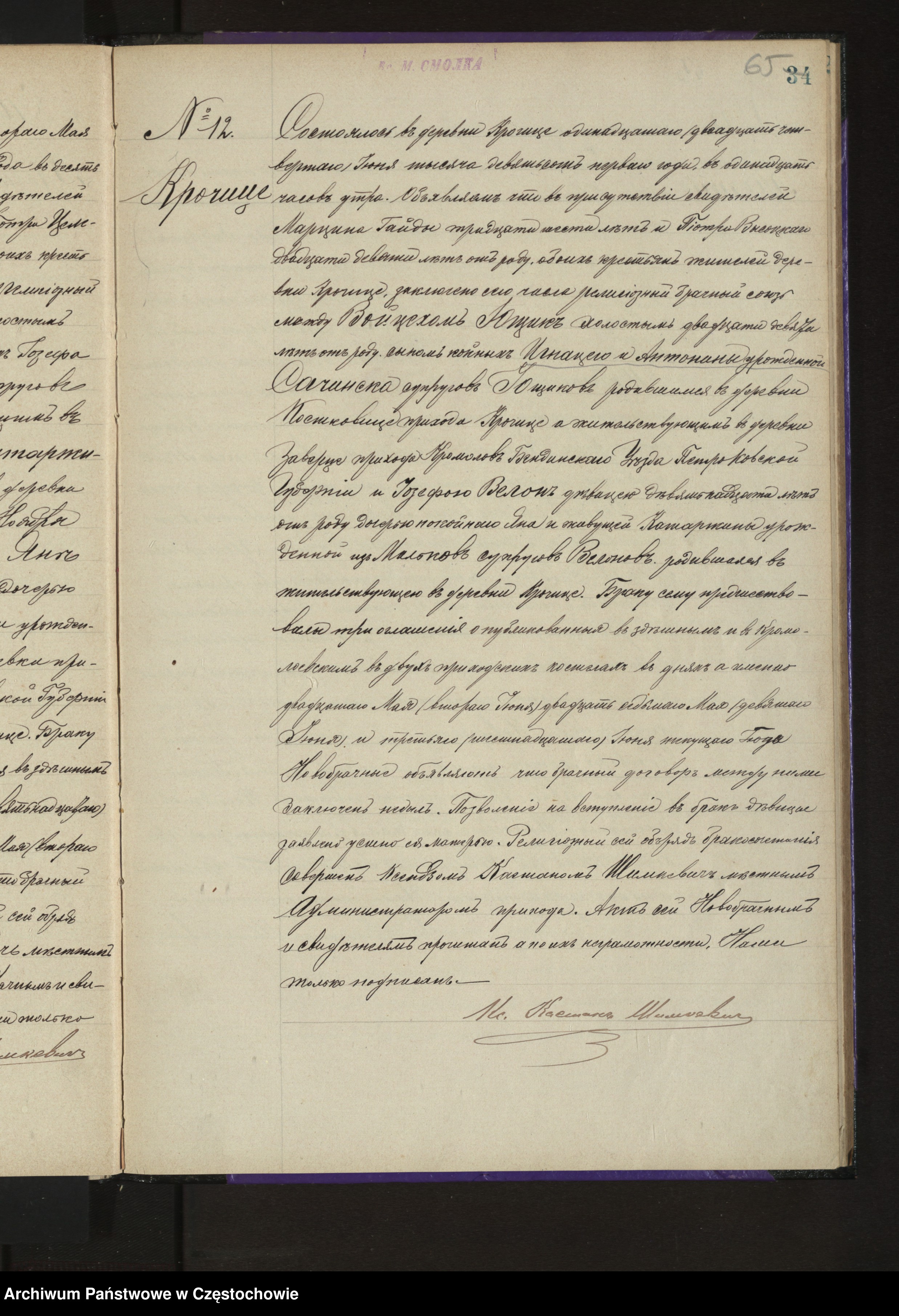 M1901/12 ślub:1901-06-24 Wojciech Juszczyk lat 29 s. Ignacego Juszczyk i Antoniny Saczyńska U:Kostkowice-Kroczyce.P:Zawiercie.
