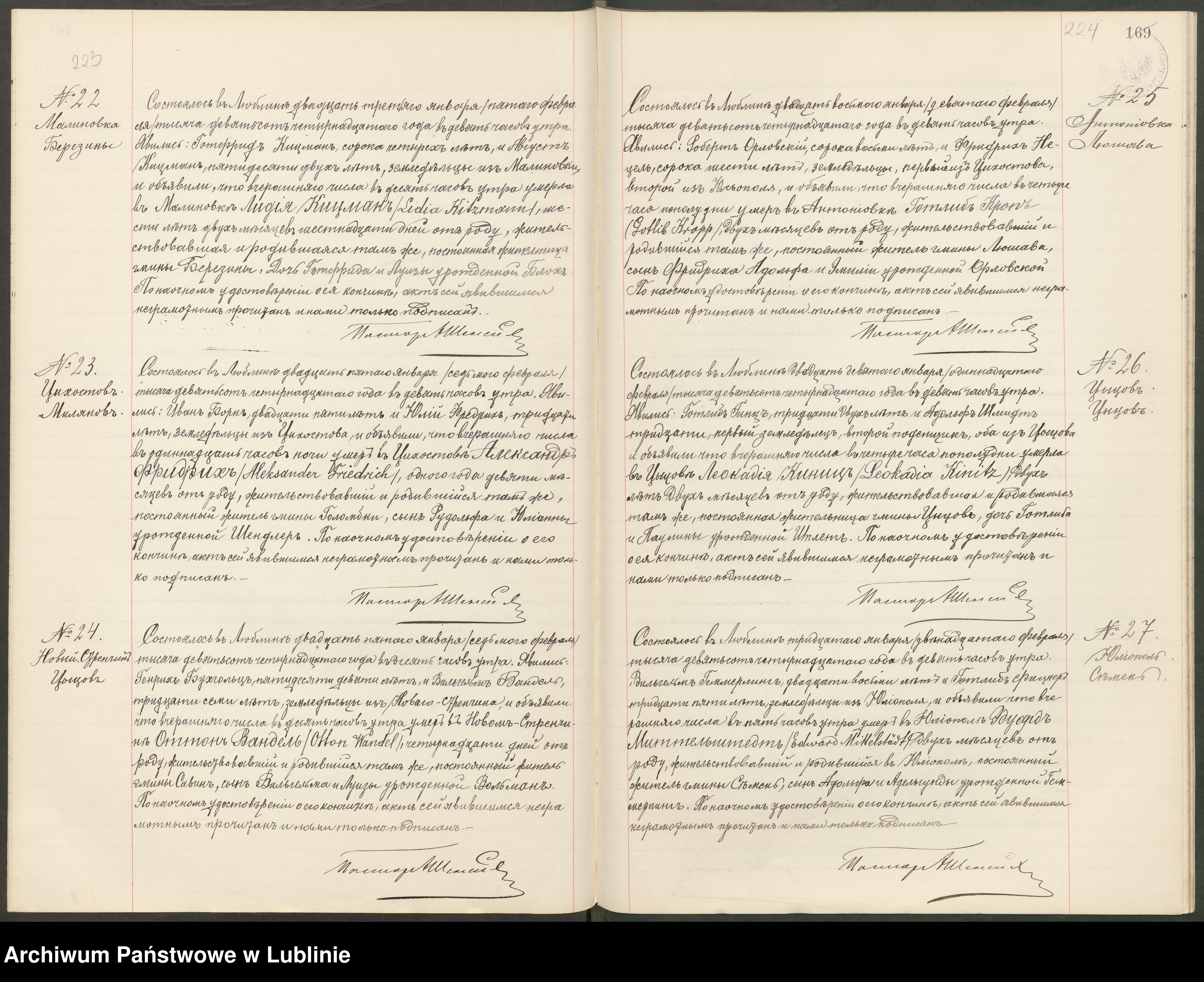 Przejrzałem też wszystkie skorowidze z dokumentów udostępnionych na szukajwarchiwach "Akta stanu cywilnego Parafii Ewangelicko-Augsburskiej w Chełmie, kantorat w Kamieniu", bo myślałem, że chodzi o Kamień koło Marianki