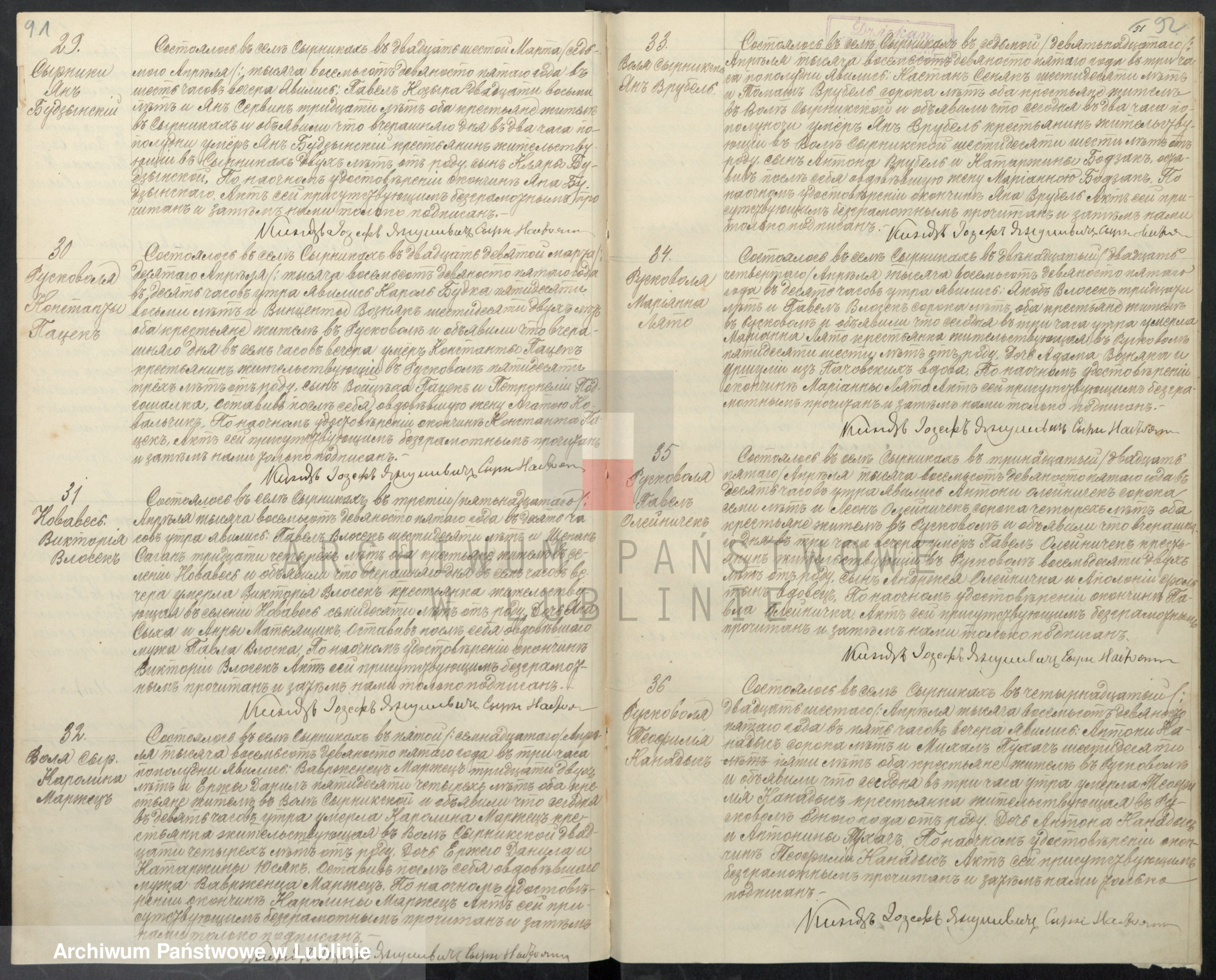 Marianna Lato, nr aktu 34, parafia Serniki, 1895. Miejscowość Ruskowola
