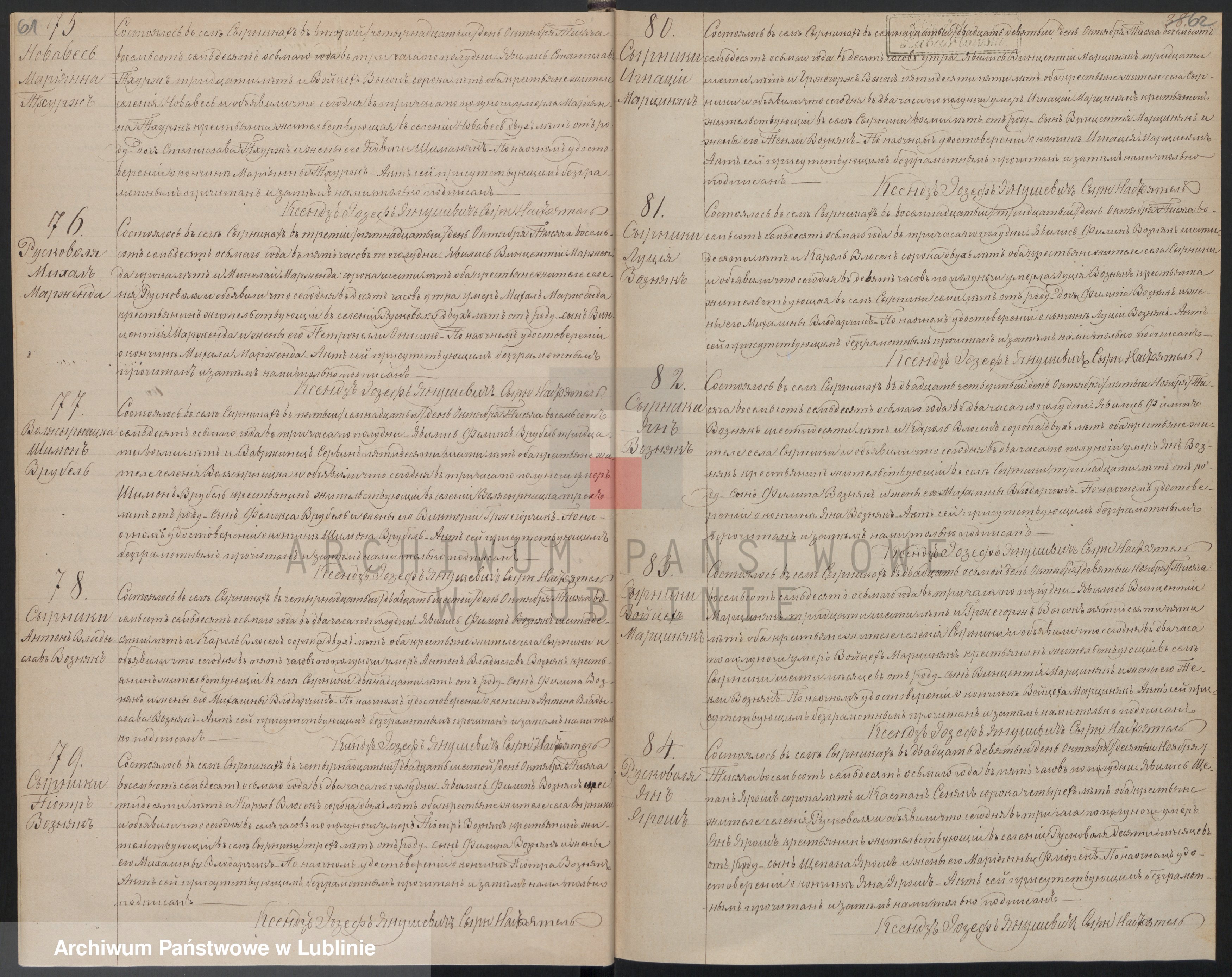 Florian Szych, nr aktu 63, parafia Kijany, 1868. Miejscowość Zawieprzyce