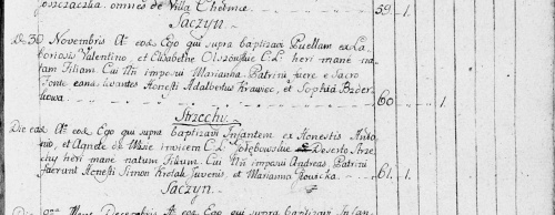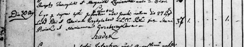 chrzestni: pracowity Maciej Szabłoński; Marianna Owczarzówna, panna; oboje z Kosmowa