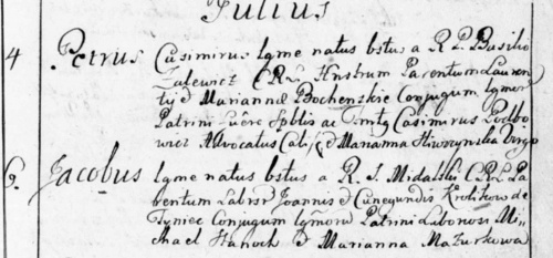chrzestni: pracowity Roch Szymczak z Kosmowa; Marianna Florczykowa, wdowa z Przedzina