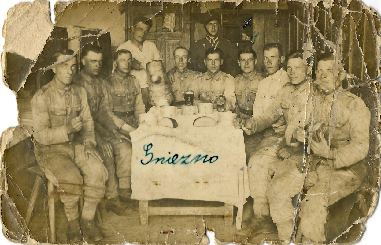 Pomyślałem że może jakaś wskazówka znajdzie się na jego jedynym zdjęciu (dziadek znajduje się po prawej stronie zdjęcia), może ktoś skojarzy jakiś element który mógłby naprowadzić nas na jednostkę w której służył lub też cokolwiek innego. Zastanawia mnie brak naramienników jak u Pana obok oraz dziwna gwiazdka z której coś wychodzi. Z góry bardzo dziękuje za wszelkie informację.