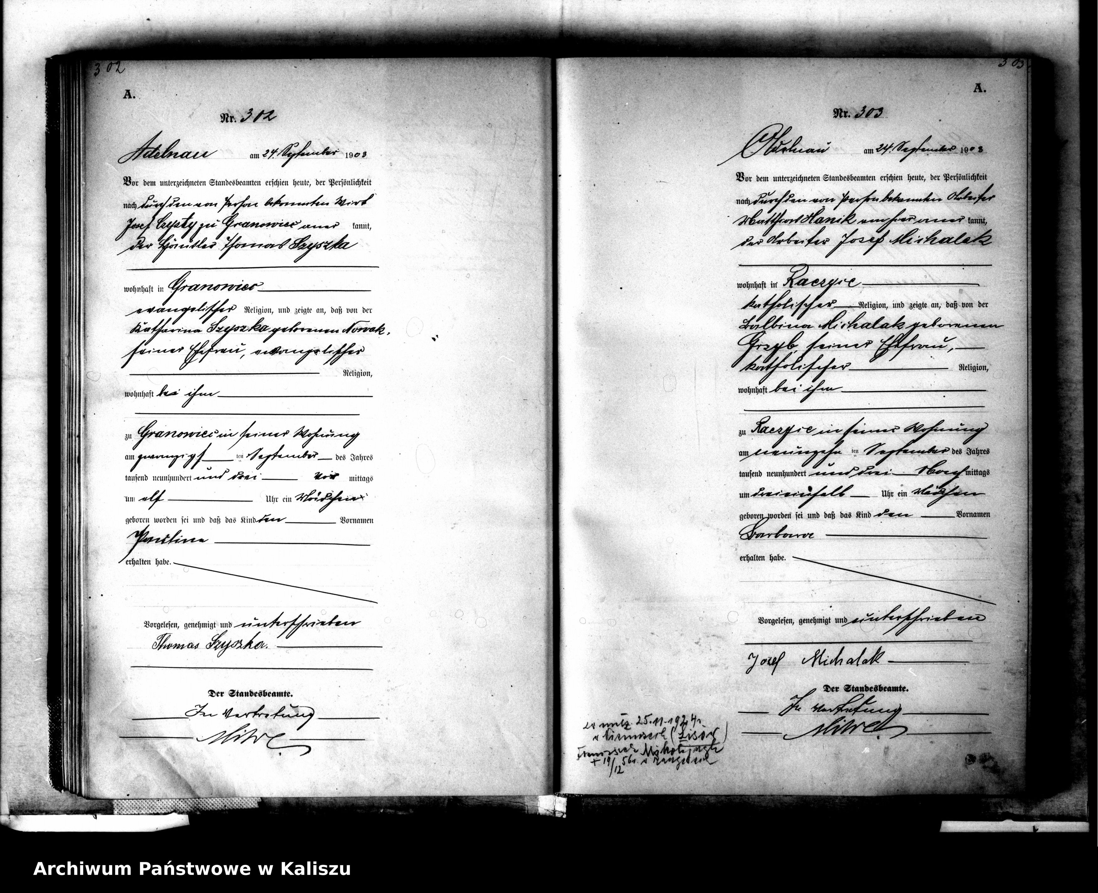 Proszę o pomoc w odczytaniu ręcznego dopisku po prawej stronie (akt 303), na dole: https://photos.szukajwarchiwach.gov.pl/ ... d38dad_max