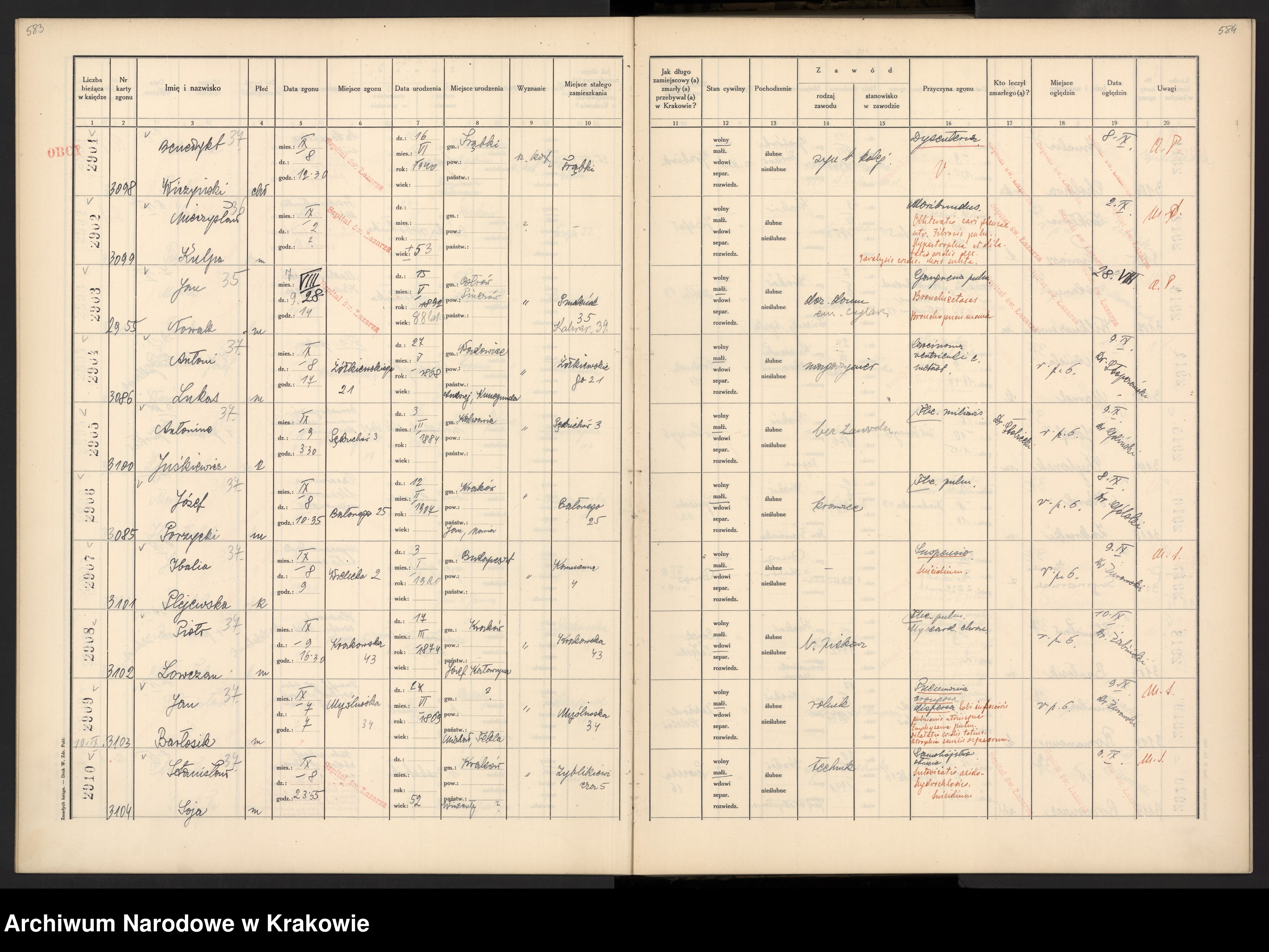 Urząd Zdrowia, Księga Zmarłych - Kraków 1941