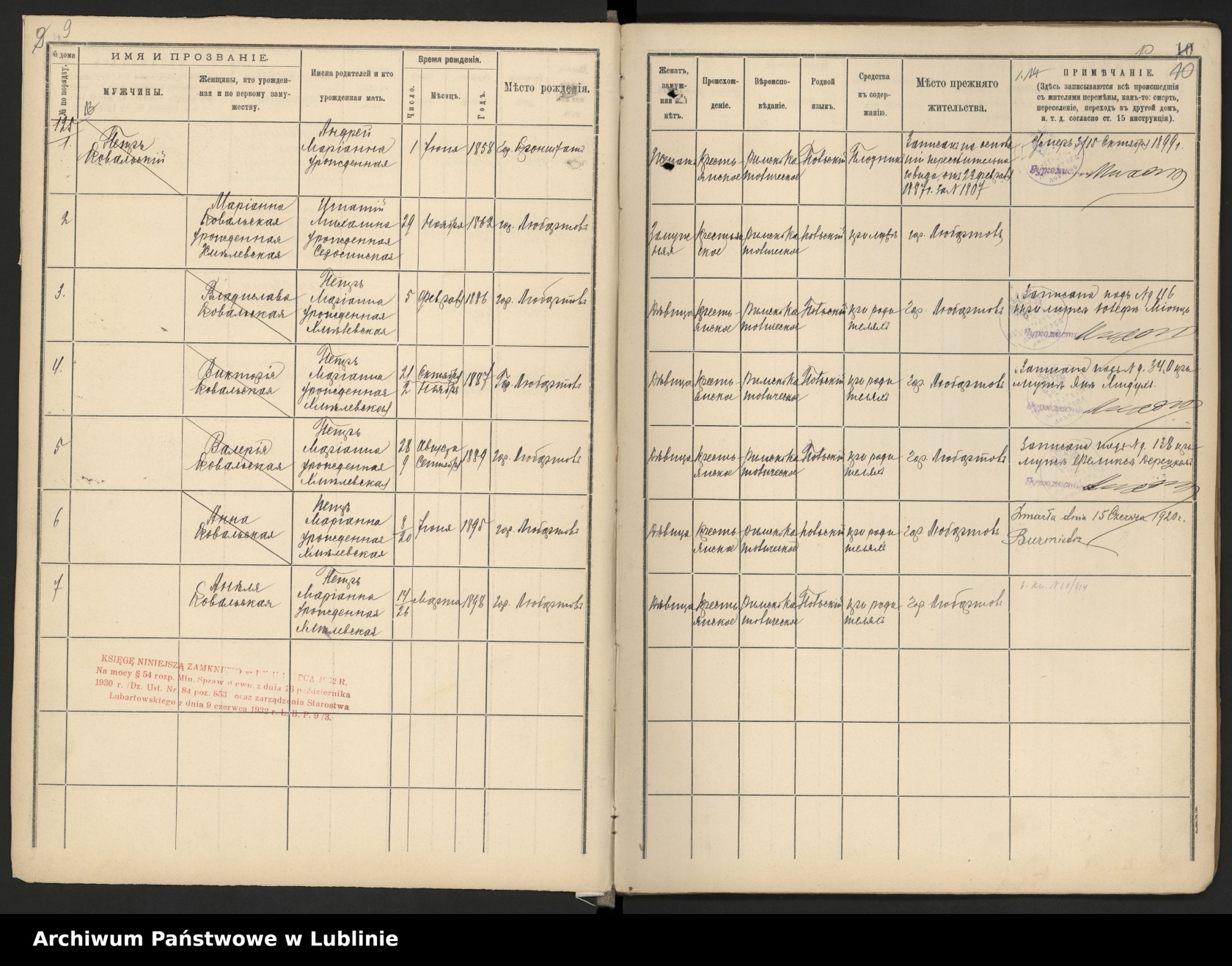Zależy mi na wszystkich informacjach dotyczących głowy rodziny (pozycja 1) z każdej rubryki.