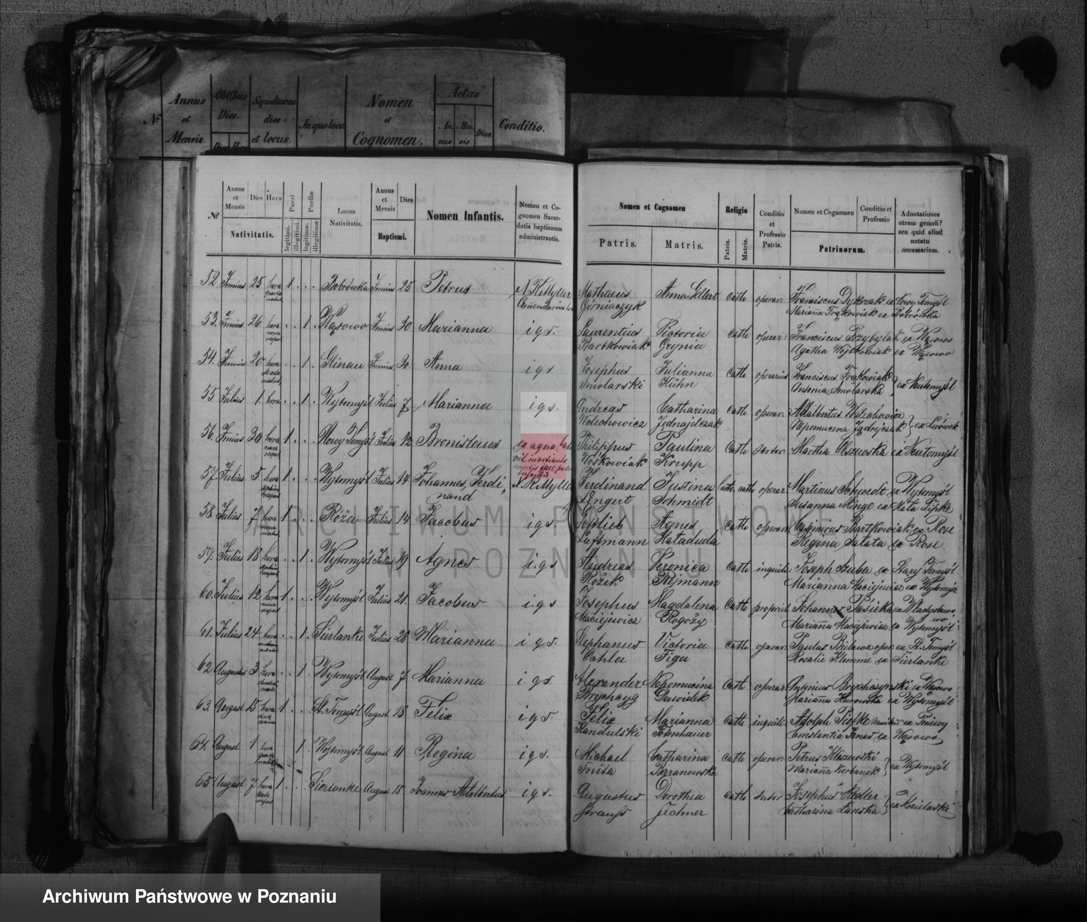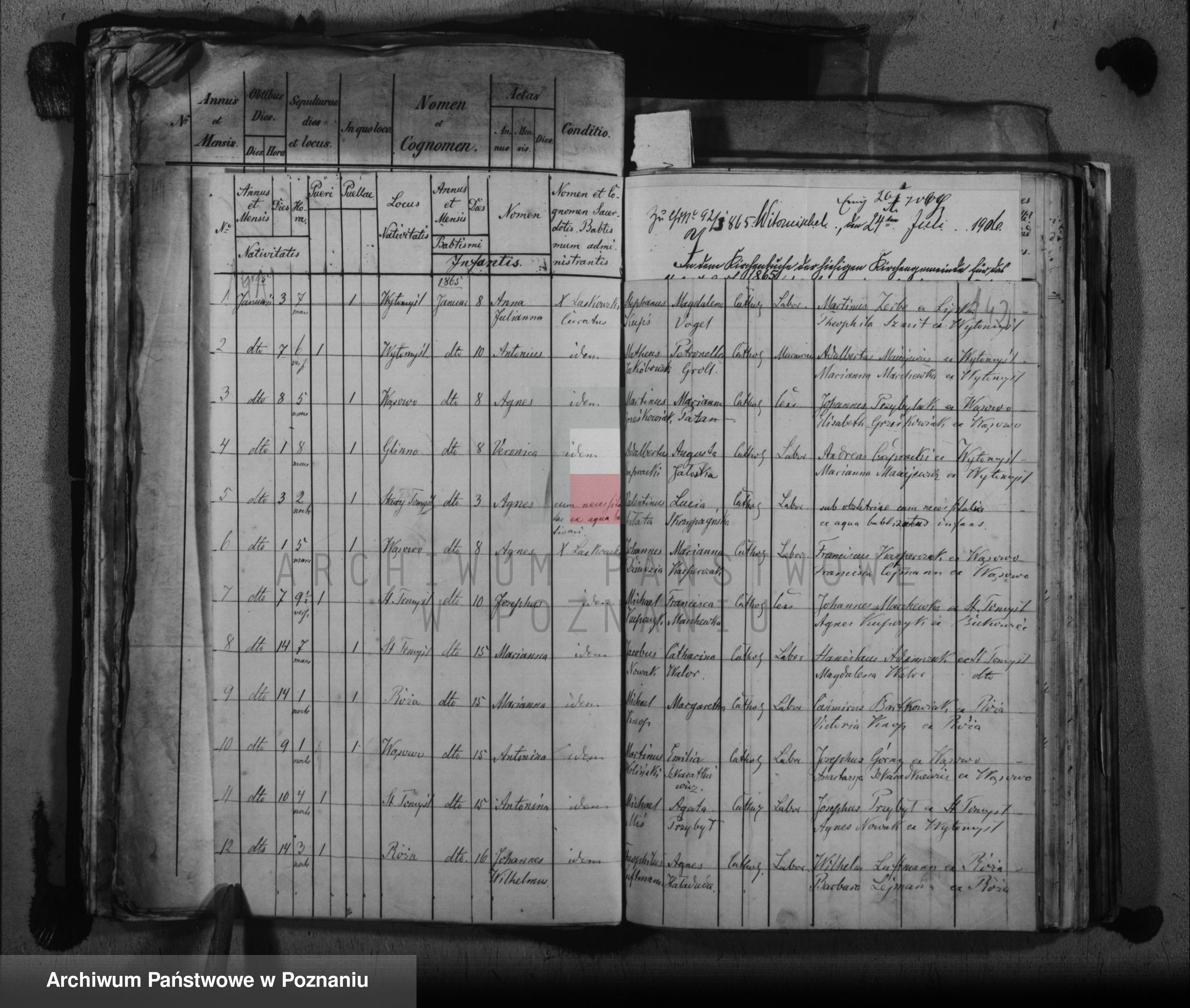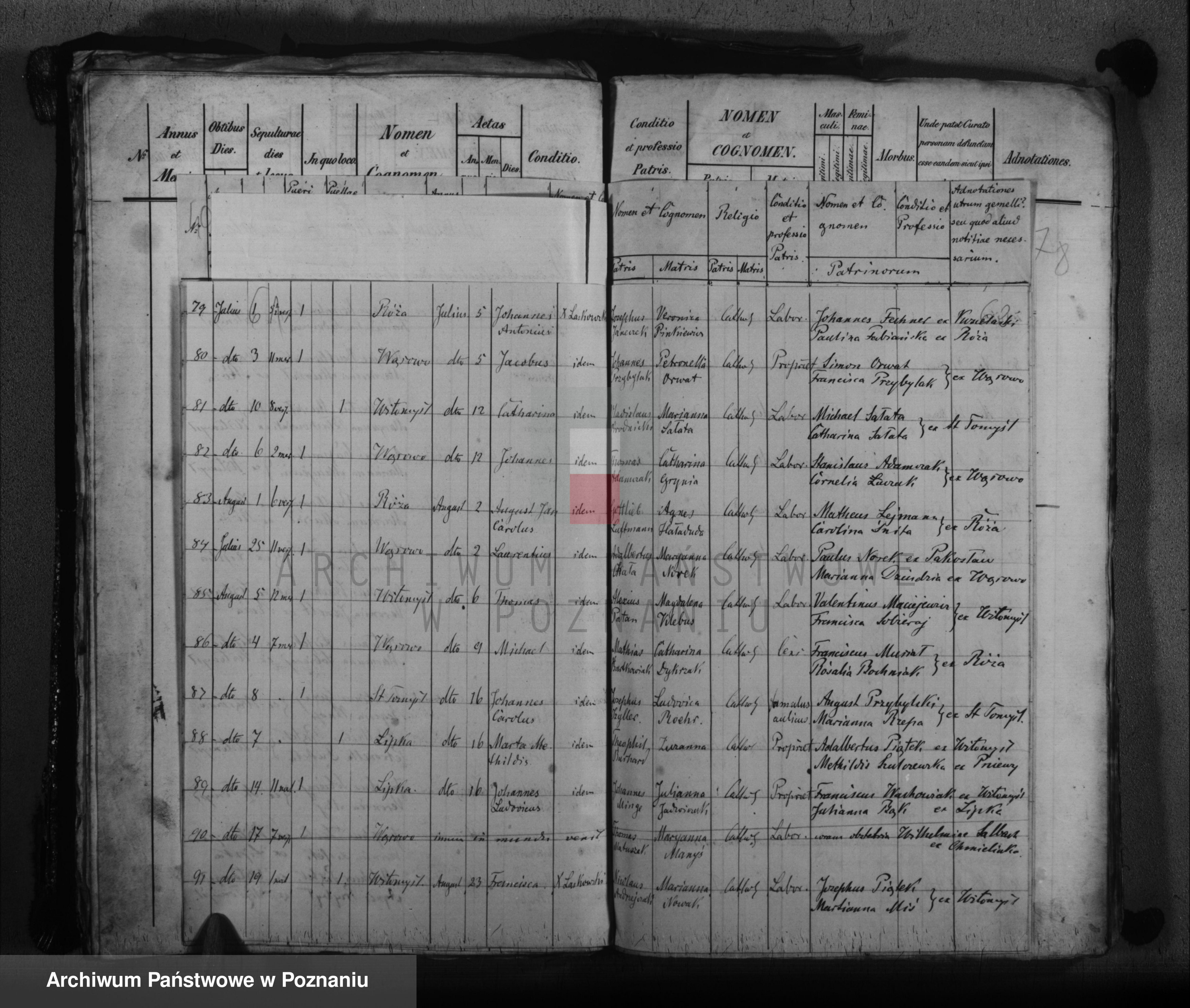 Akty z Kuślina to akty urzędu stanu cywilnego, rodzice są wymienieni jako katolicy być może w aktach parafialnych będzie więcej informacji. Wąsowo to parafia Wytomyśl, niestety akty w archiwum diecezjalnym w Poznaniu, niedostępne z tych roczników online.