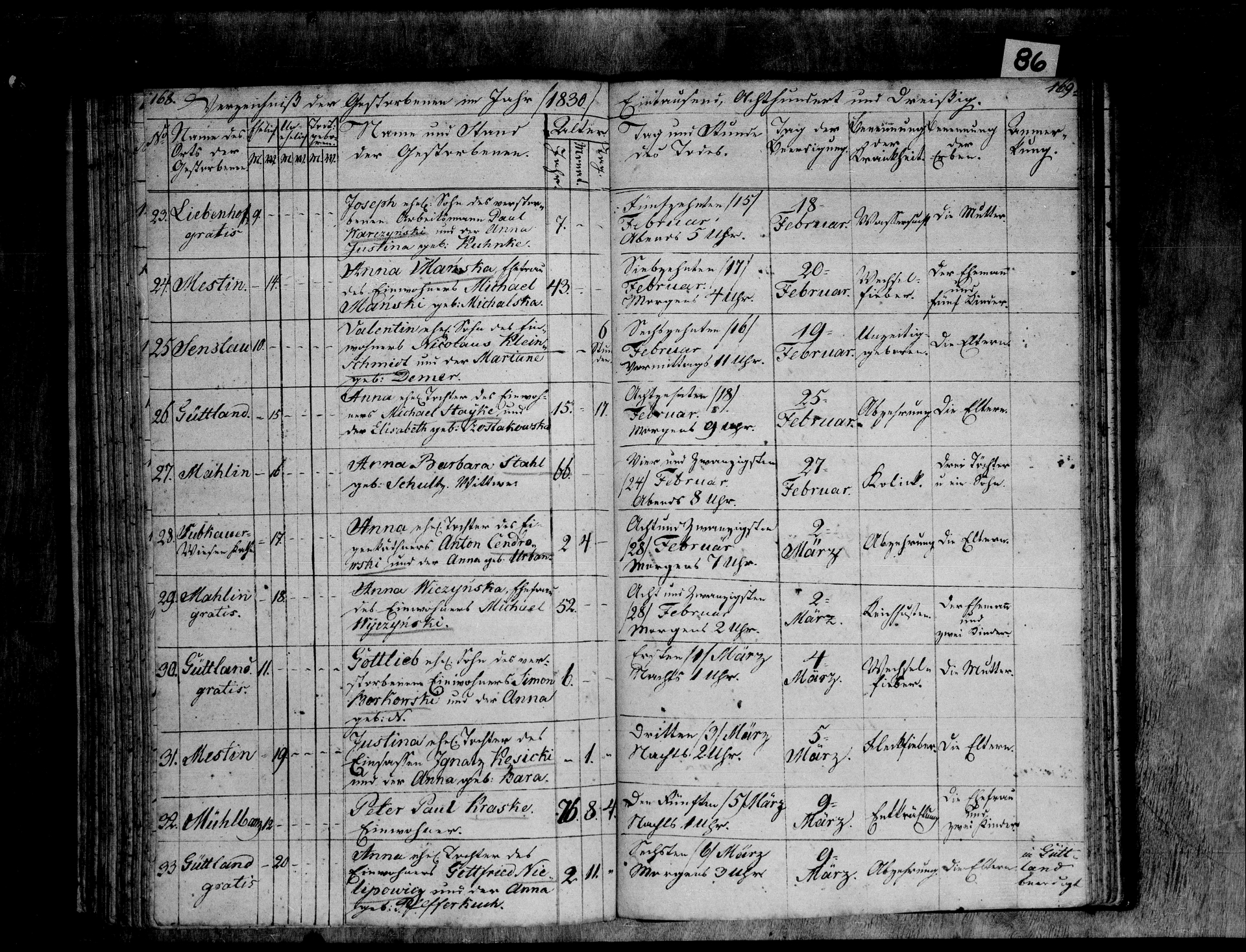 Akt zgonu 1830 Miłobądź