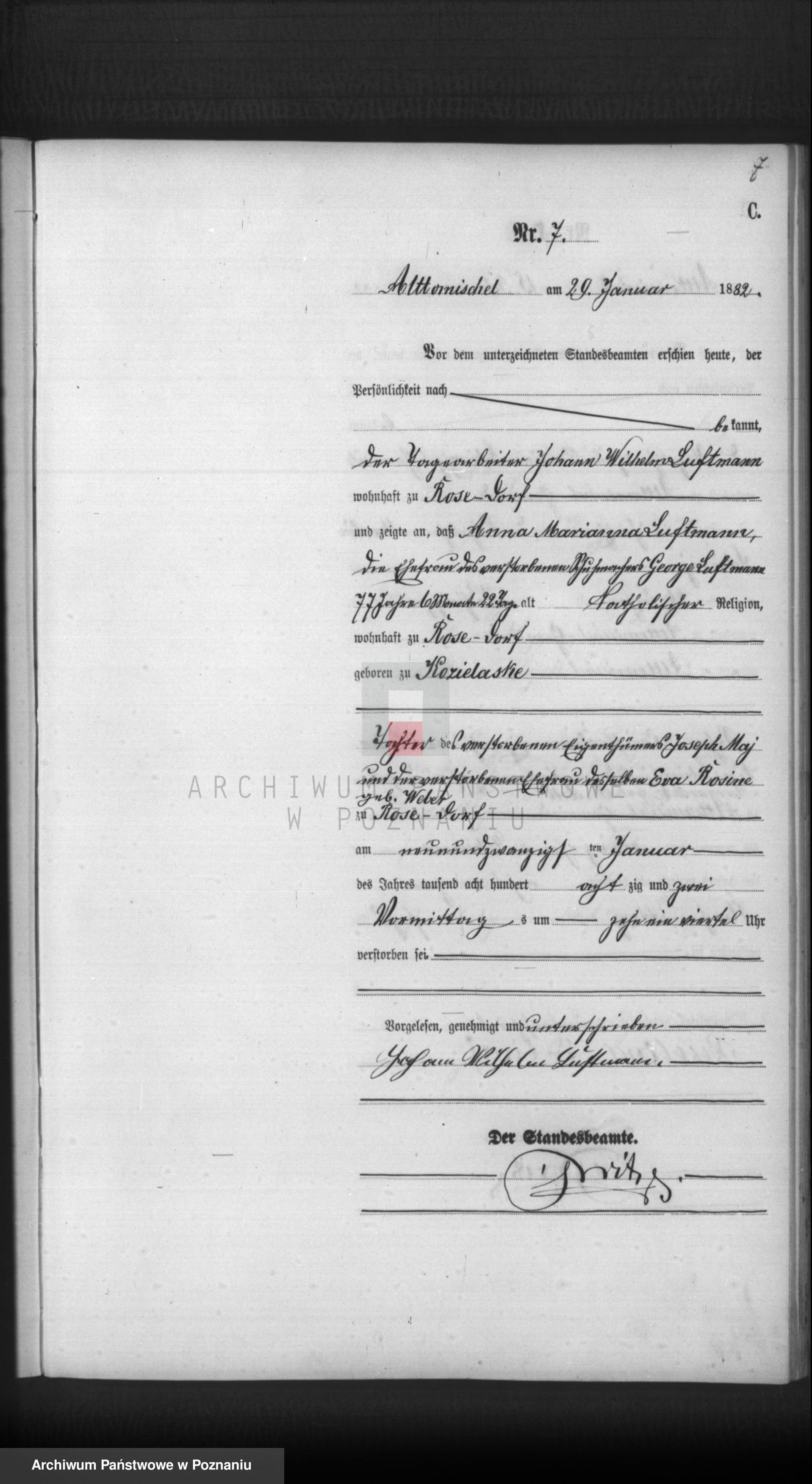 i zgłosiła, że jej mąż dniówkarz /der Tagelöhner/ Gottlieb Luftmann,