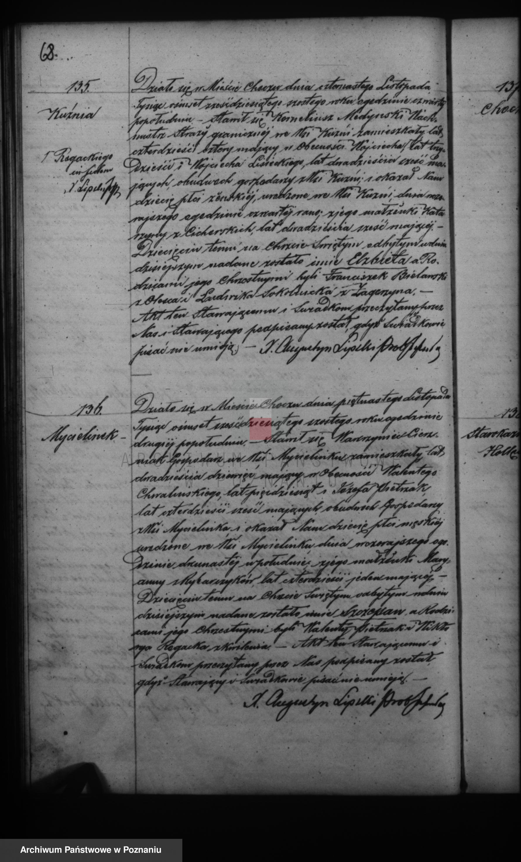 Np. ur córki Elżbiety 1866r./par. Chocz (akt 135)