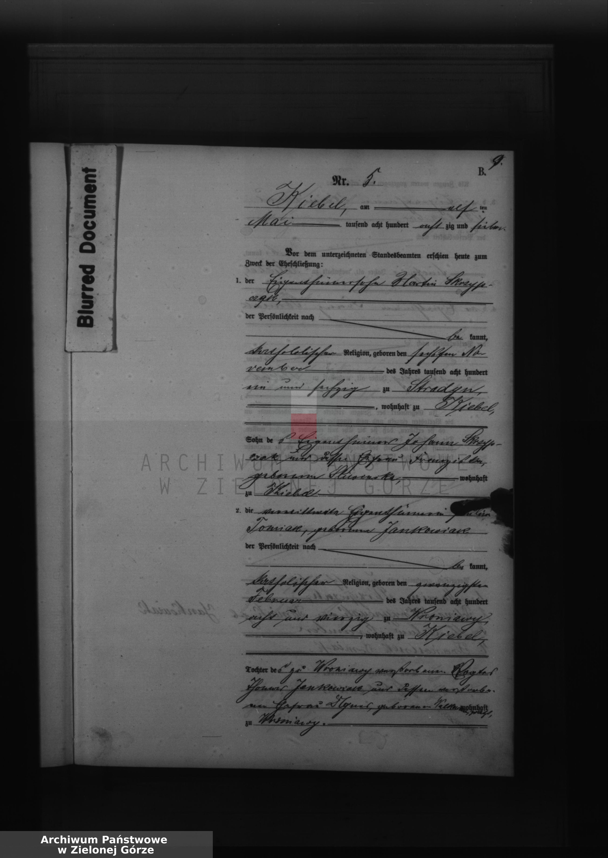 Proszę o przetłumaczenie zawodu ojca panny młodej Tomasza Jankowiaka. Akt ślubu pochodzi z 1887 roku z Kębłowa.