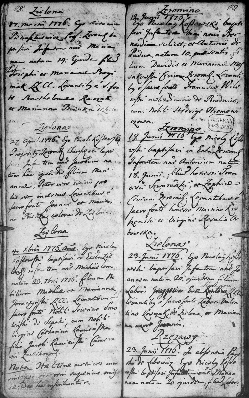 str.79 19.06.1776 ŻUROMIN ur. Antoni , rodzice Franciszek Szwaradzki i Zofia