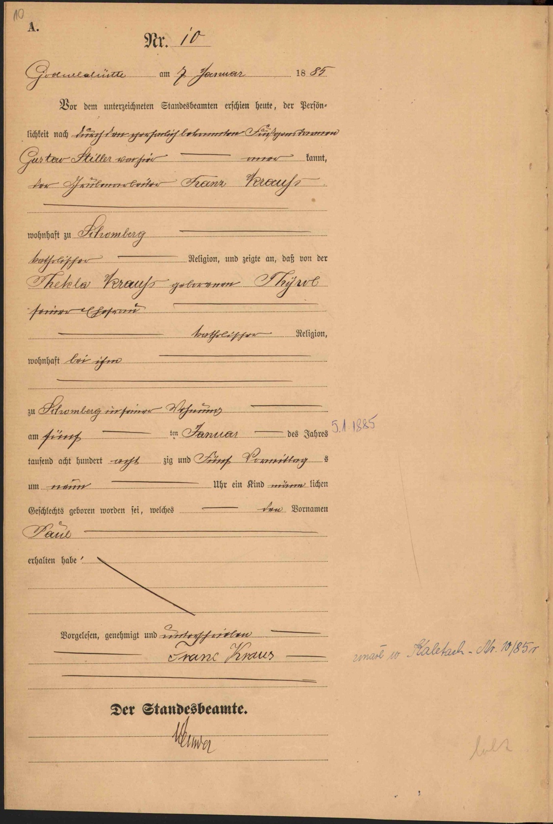 i zgłosił, że Thekla Kraus, z domu Tyrol,