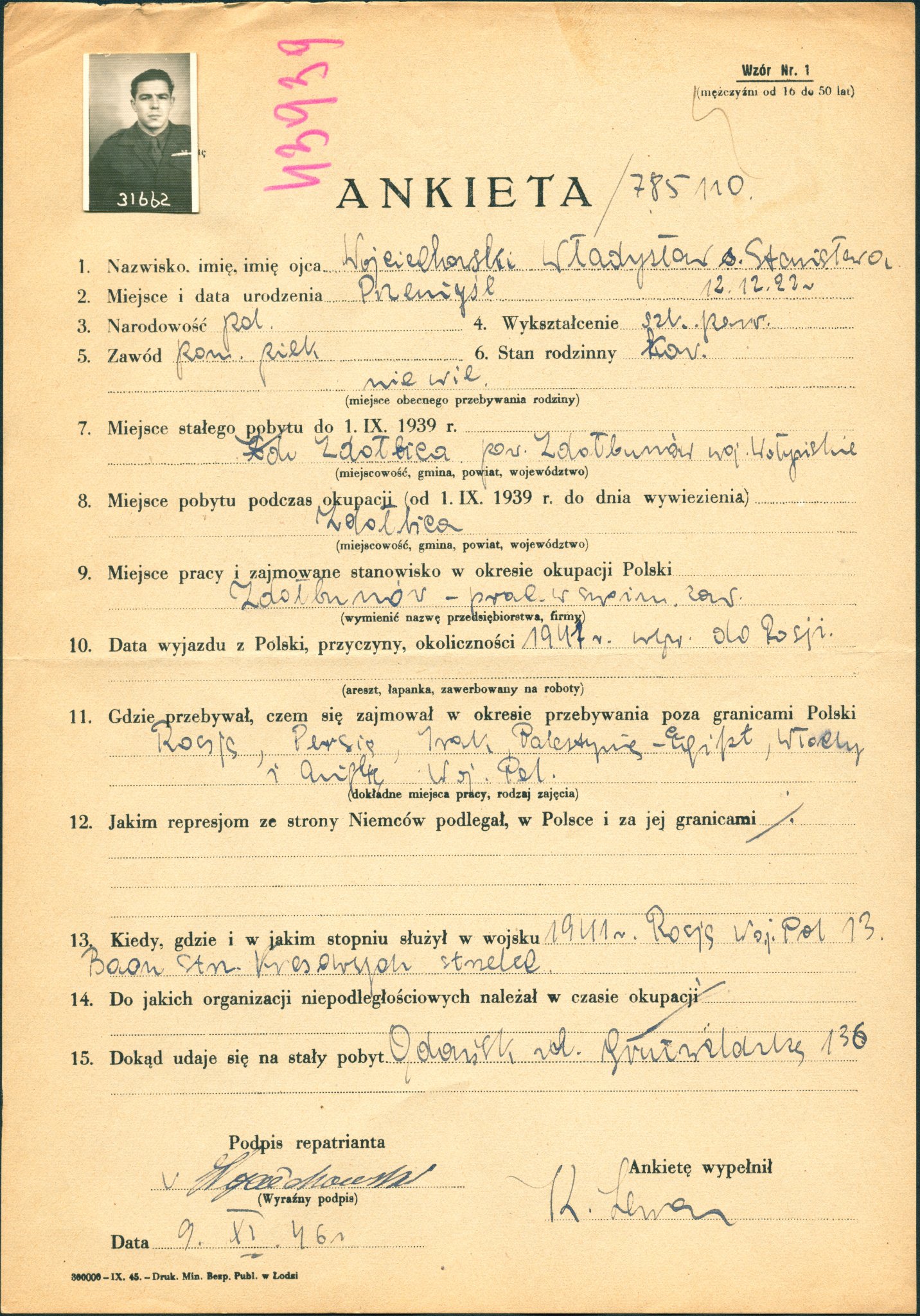 Poniżej zdjęcia dokumentów (Ankieta repatriacyjna, Zeszyt Ewidencyjny):