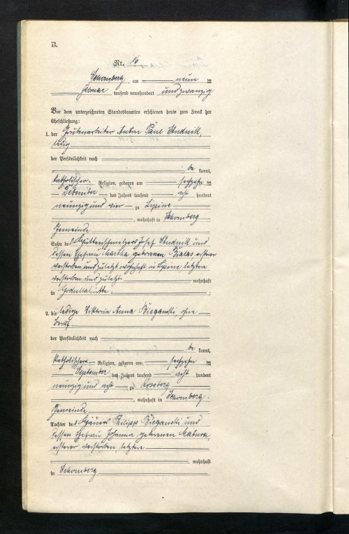 Prosze o przetłumaczenie aktu ślubu nr.16 z 1920(?) parafii Bytom-Szombierki(Schomberg) Antona Studnika i Wiktorii Biegańskiej