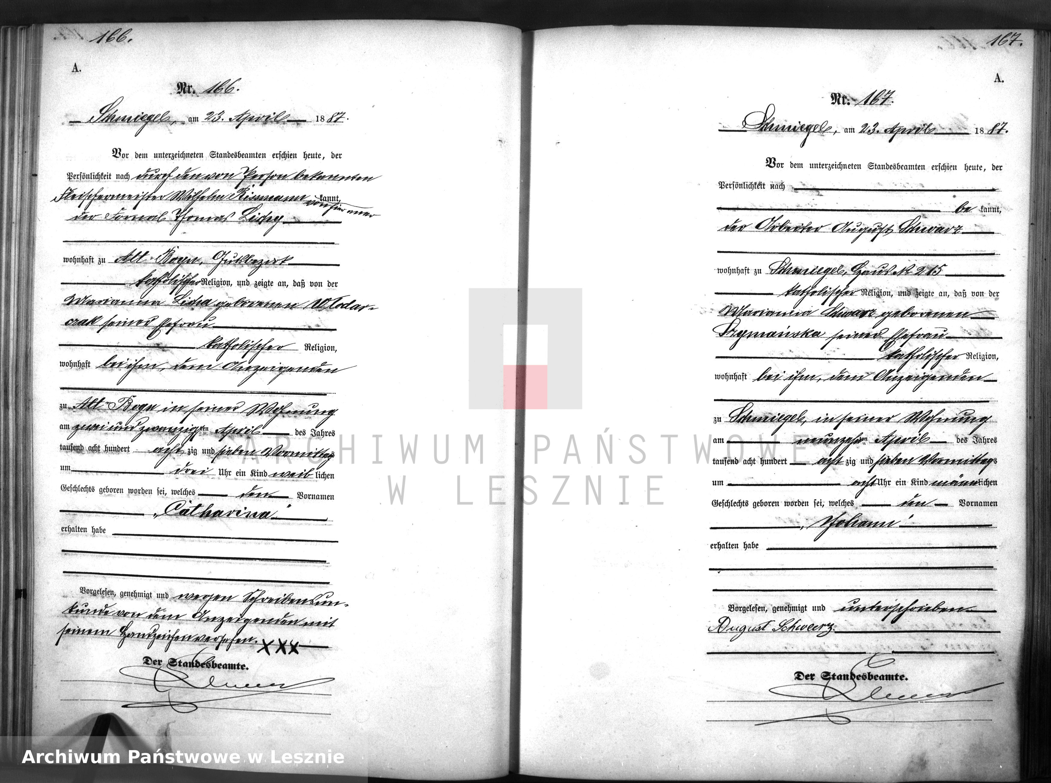 Akt urodzenia nr 166,