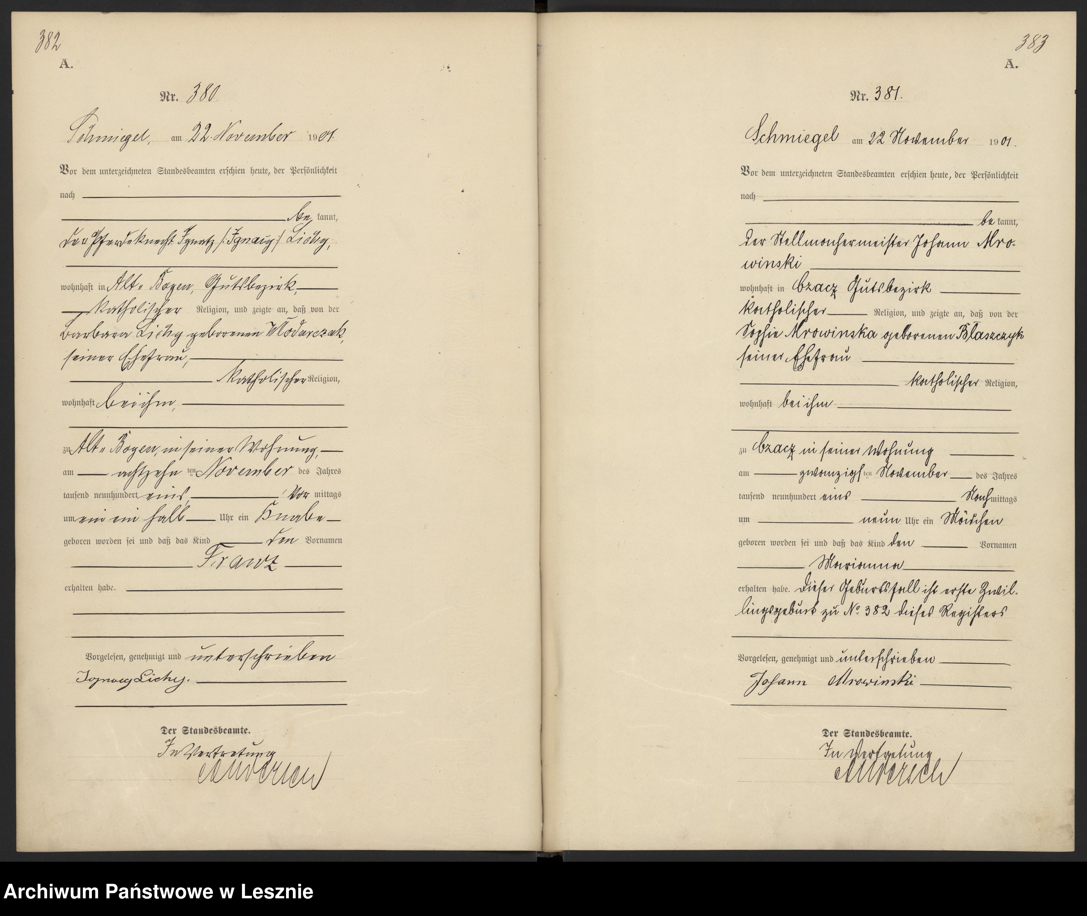 U 380; Stare Bojanowo, par. Śmigiel; 1901; Lichy Franciszek (urodzenie)
