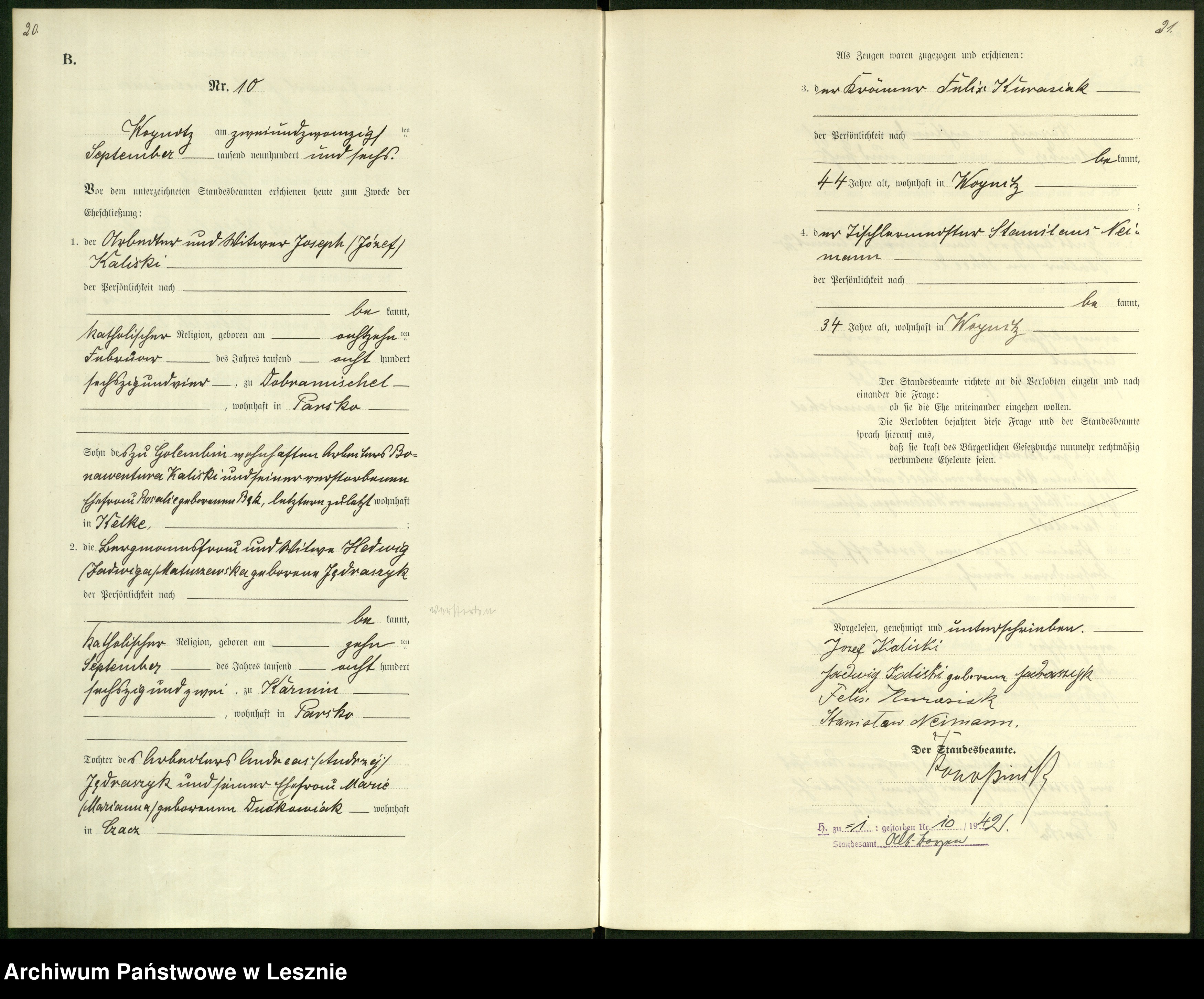 syn w Golembin zamieszkałego robotnika /der Arbeiter/ Bonawentura Kaliski