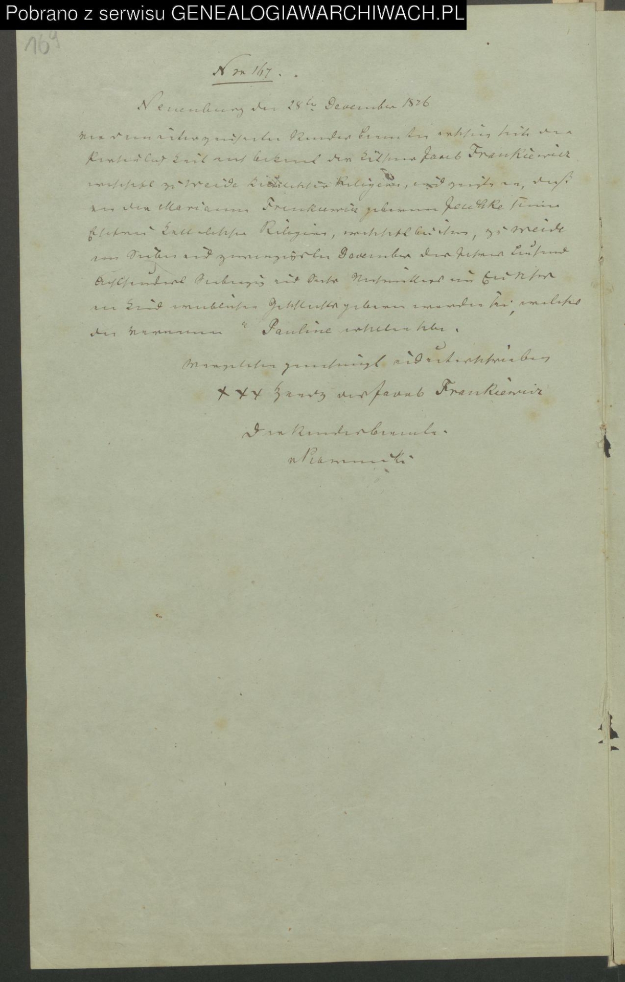 Akt ur. nr 169 z 1876r. Paulina Frankiewicz ok.