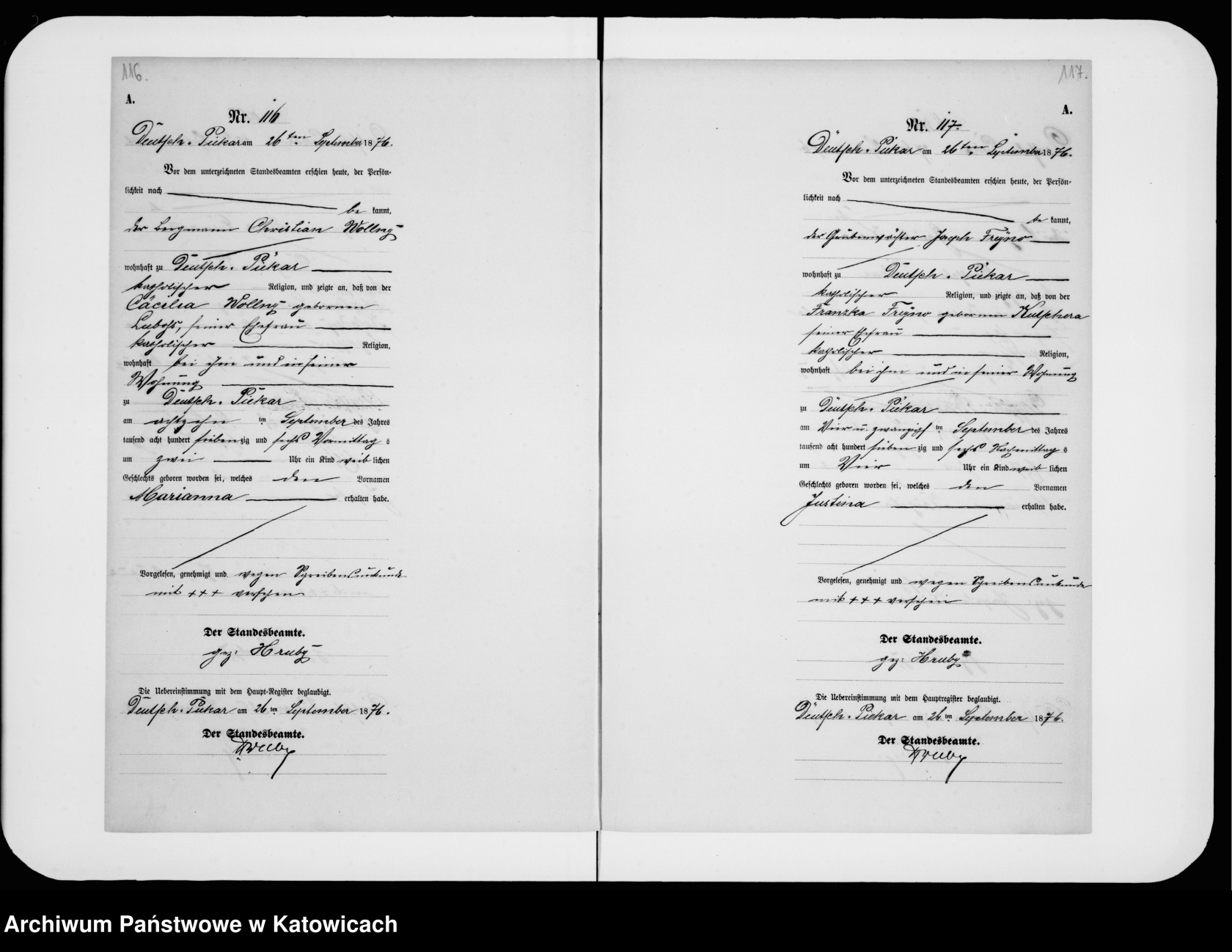 Deutsch Piekar, 26.09.1876, urzędnik: Hruby