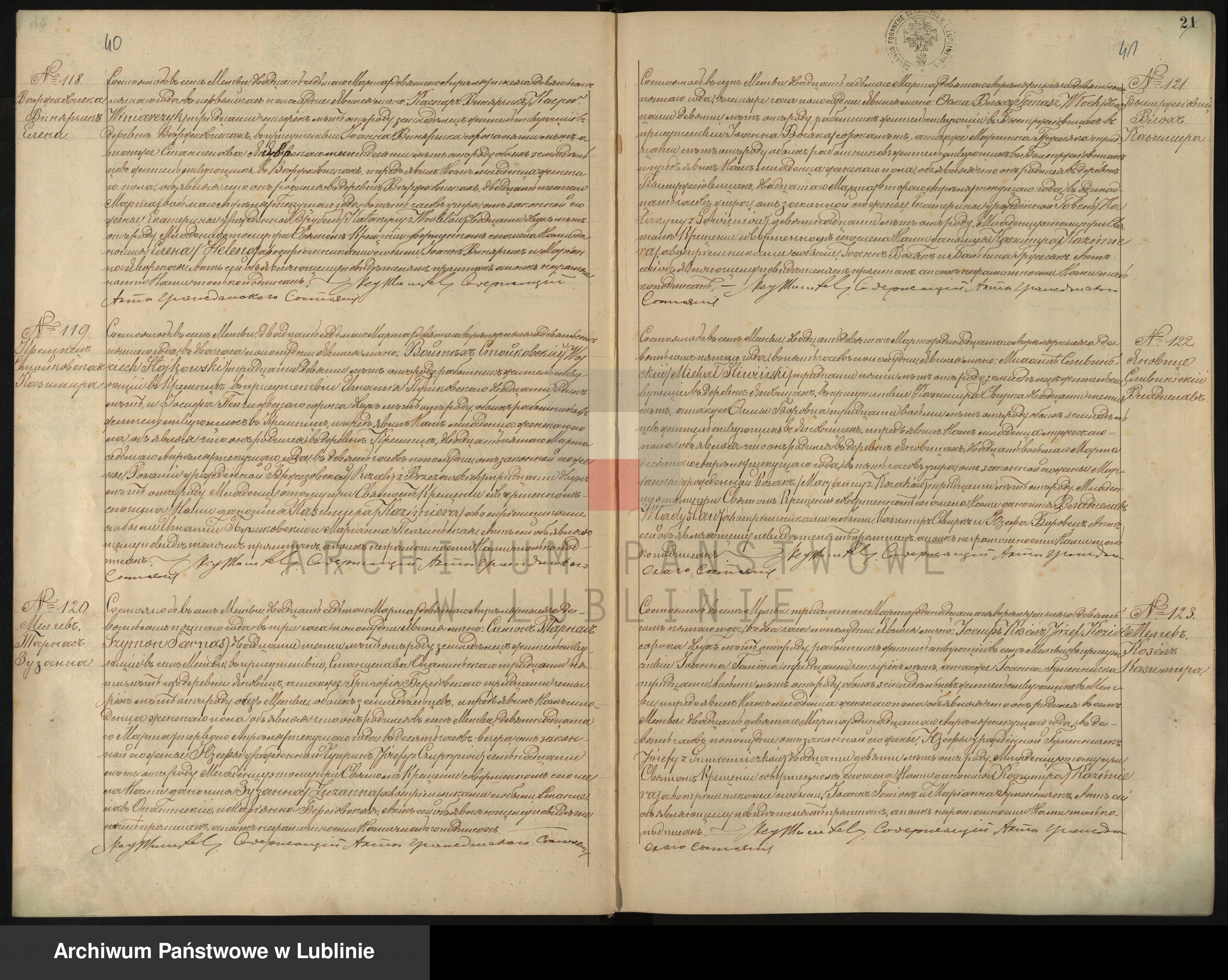 świadkowie: Jan Stiżej 24 lata, Paweł Gansławski/Gąsławski 30 lat robotnicy (najemnicy) żyjący w Tarnawce