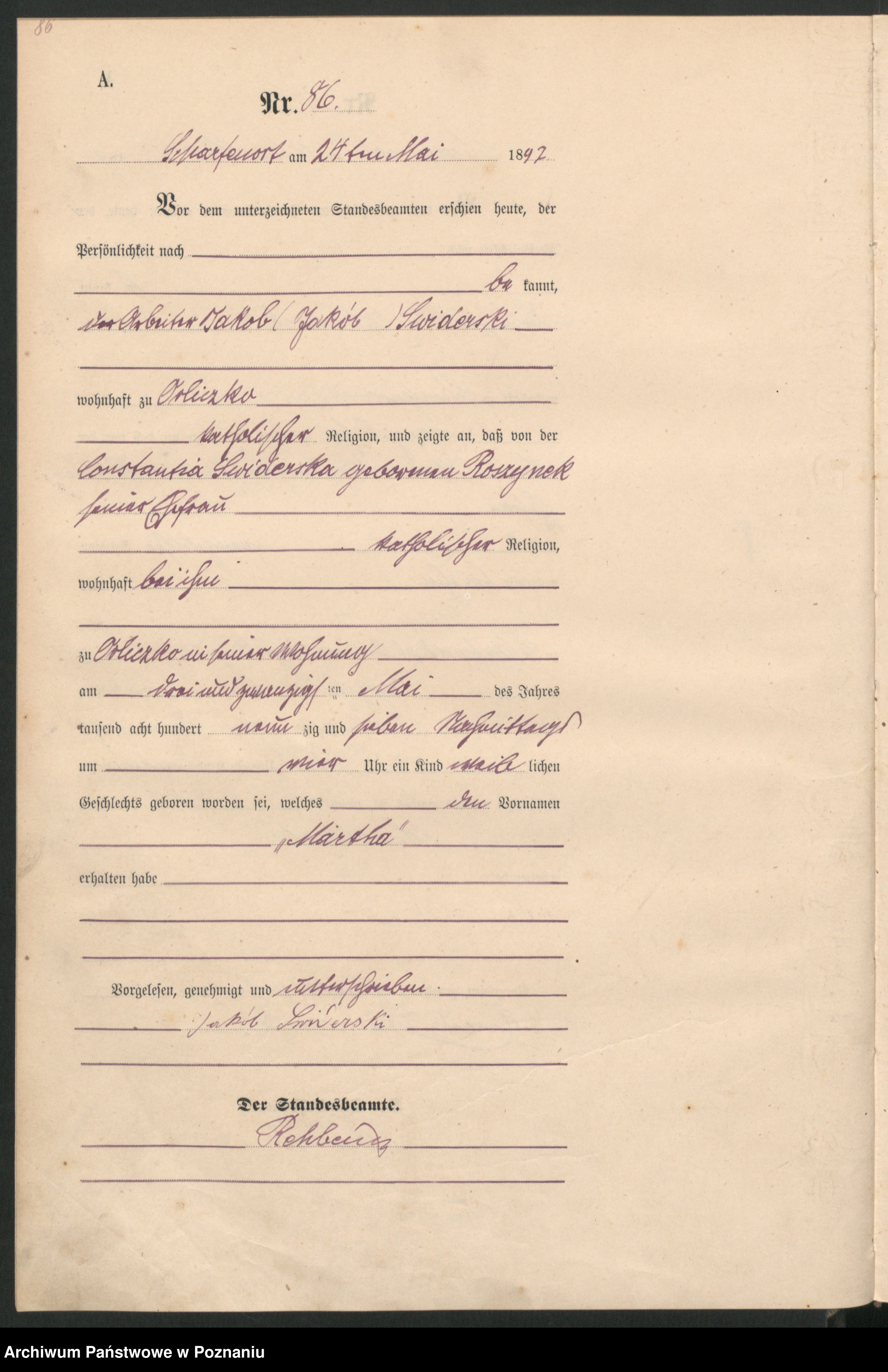 OK Akt urodzenia, Świderska, Ostroróg koło Szamotuł, 1897