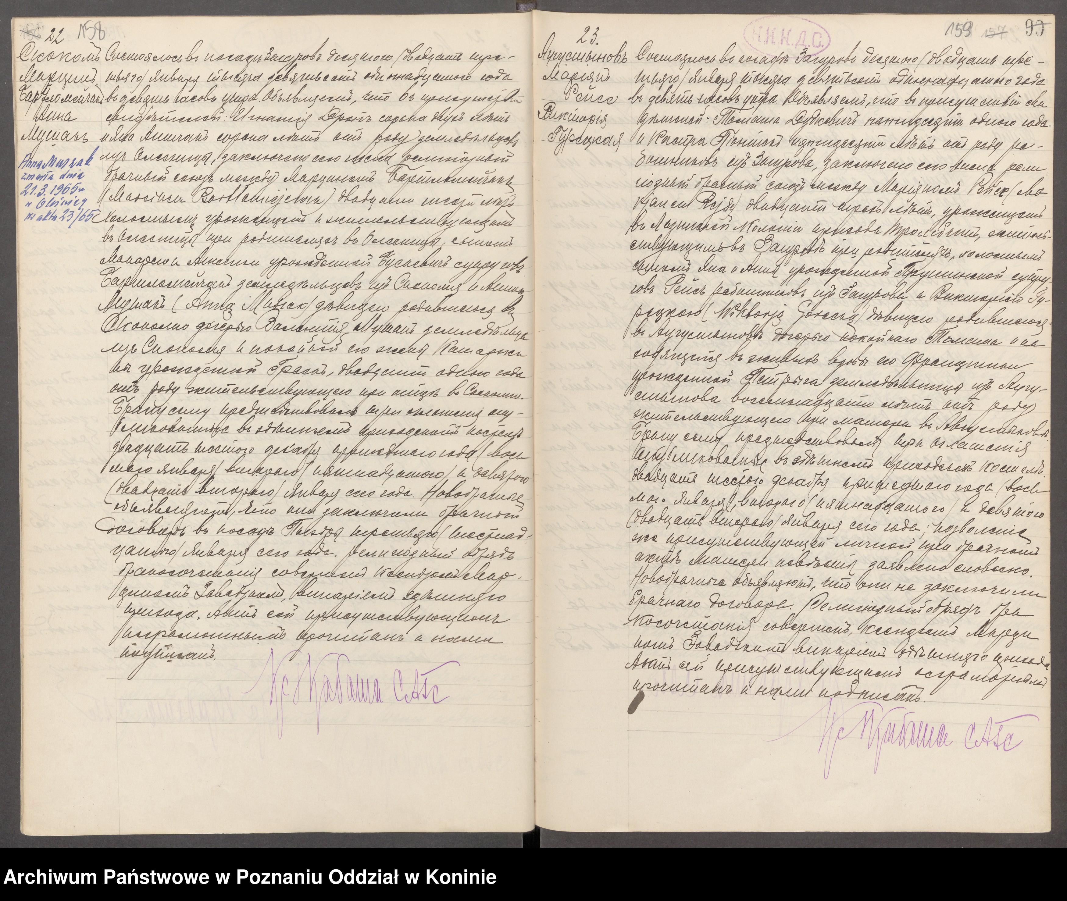 w załączniku odnośnik do skanu aktu małżeństwa Mariana Rejse, ur. 29.07.1886 w Łazińsku z Marianną Górecką, ur. 9.12.1892 w Augustynowie zawartego w parafii Zagórów dnia 29.01.1911 pod numerem 23. Z góry dziękuję.