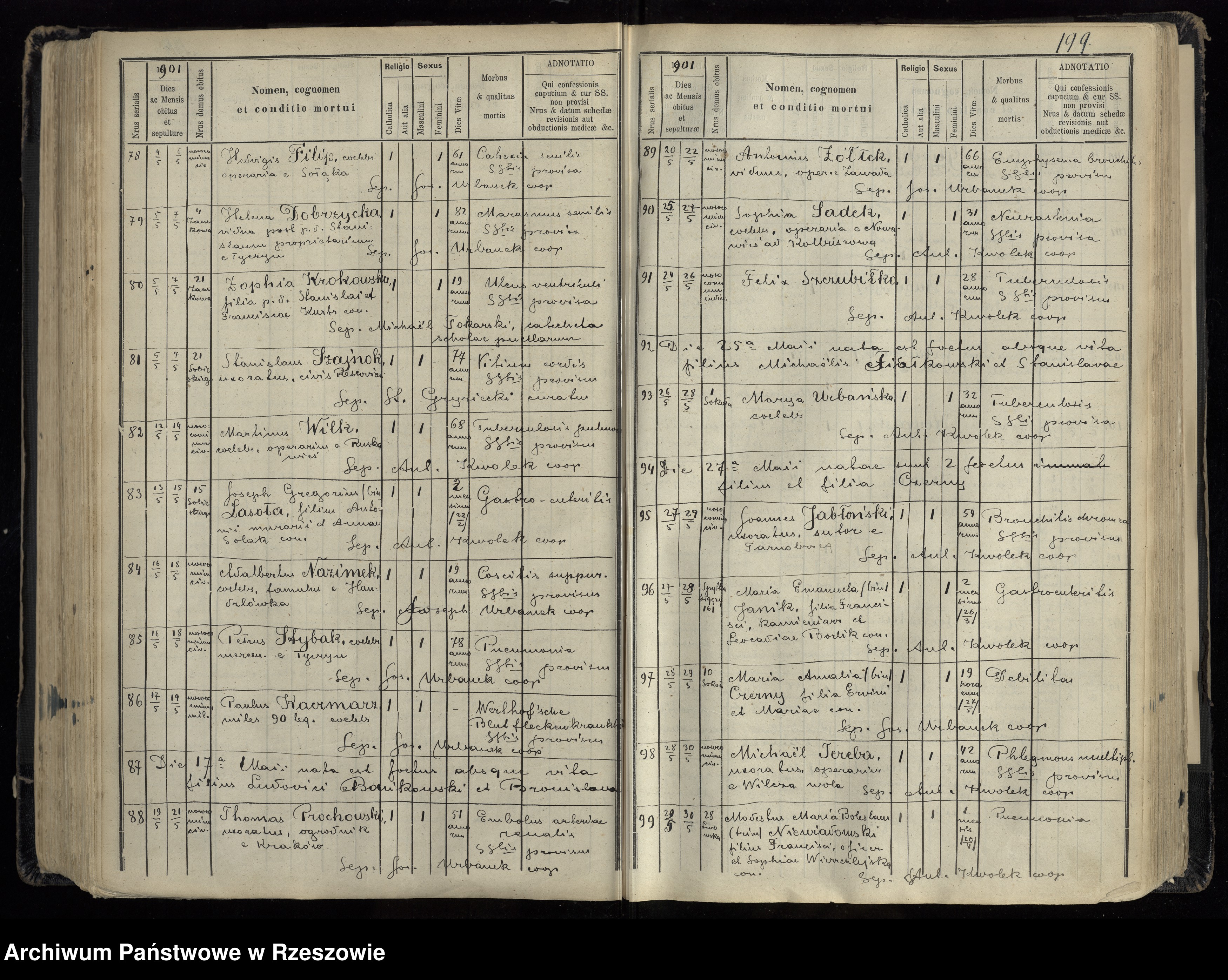 98 / 28 V / 30 V / szpital miejski / Michał Tereba, żonaty, robotnik z Wilczej Woli / 42 l. / ropowica rozsiana; opatrzony sakramentami
