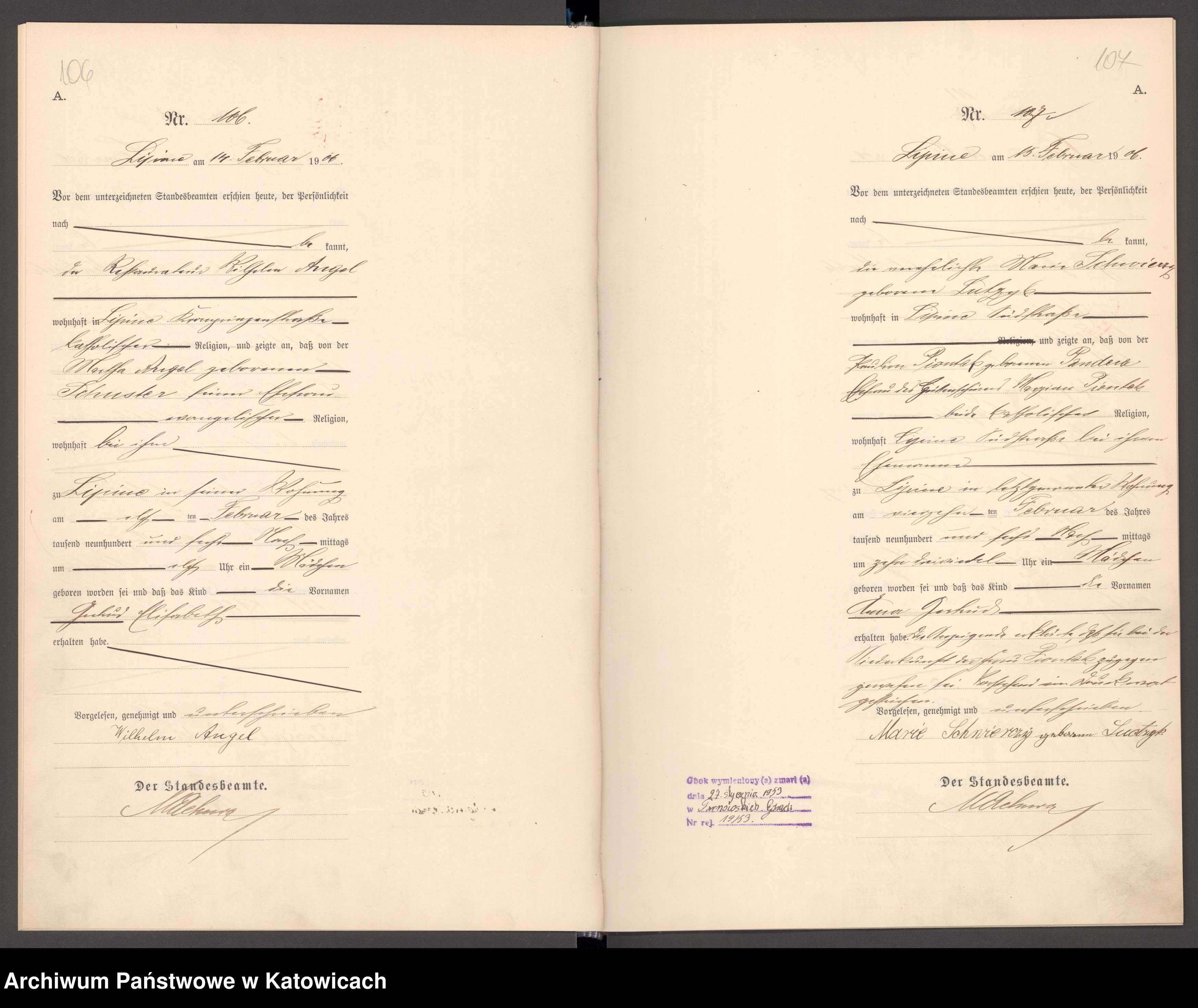 Re: Akt Urodzenia, Anna Gertruda Piontek ur 14/2/1906