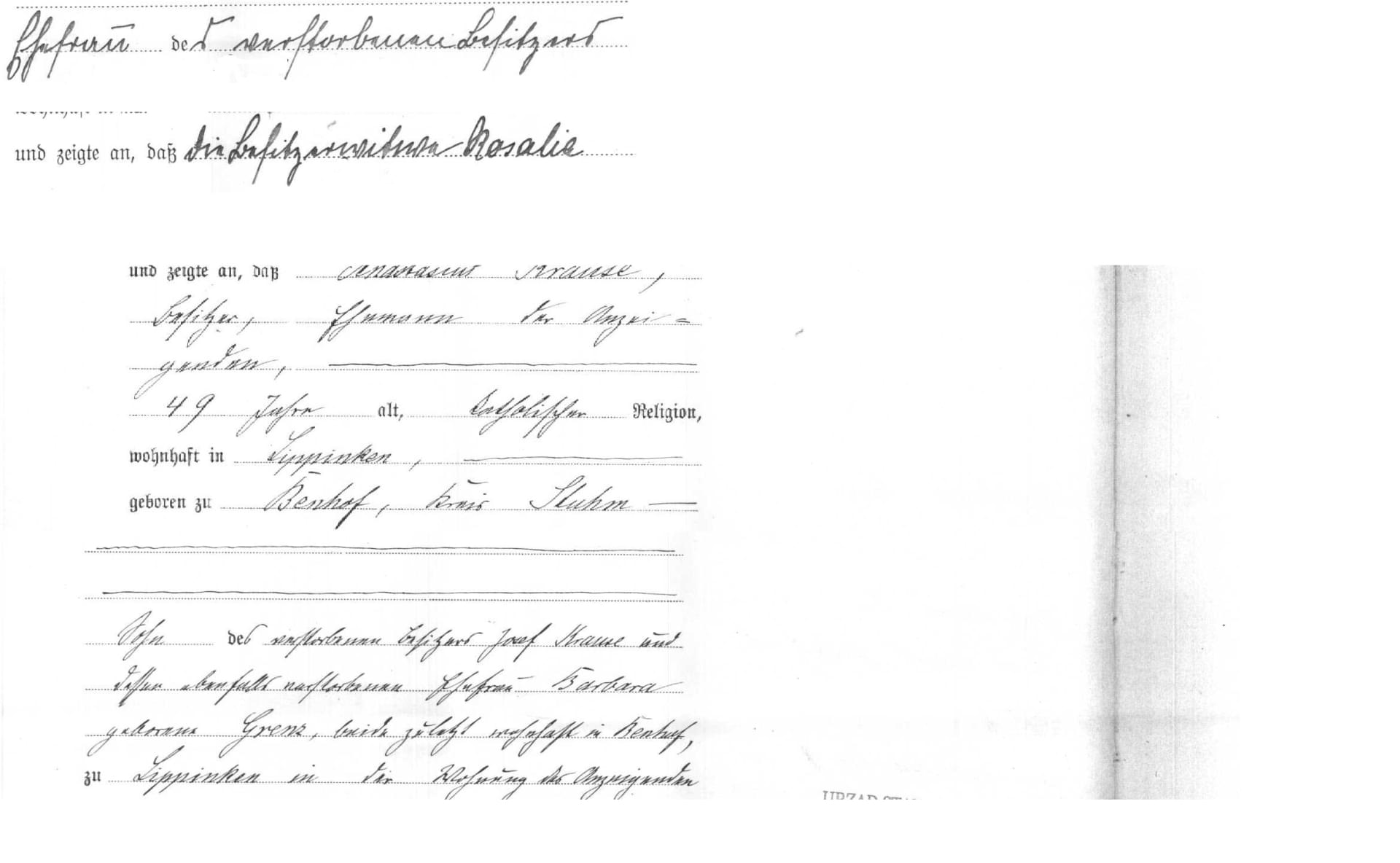 syn zmarlego wlasciela Josef Krause i jego rowniez juz zmarlej malzonki Barbara dd Grenz, oboje ostatnio zamieszkali w Benhof