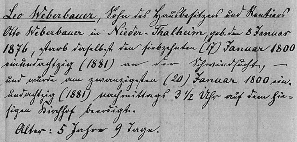 Akt zgonu - Leo Weberbauer, 1881 - OK