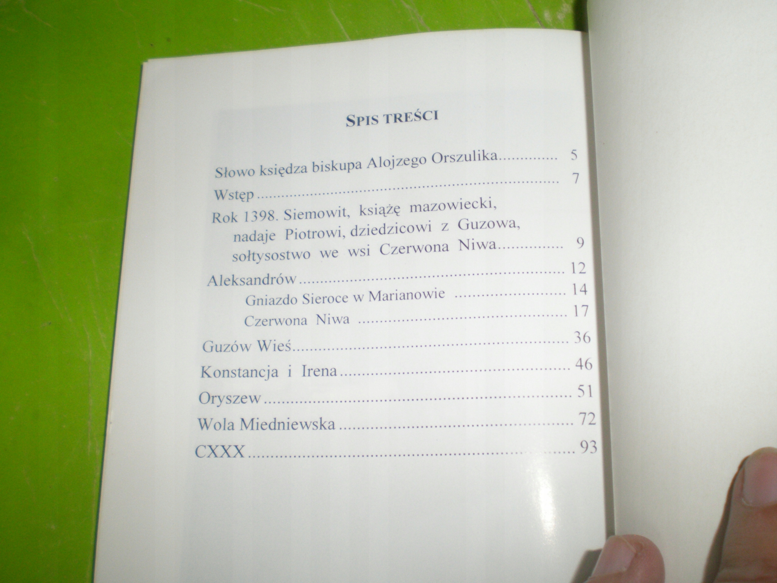 Jestem w posiadaniu kserówki wydawnictwa "Guzów i okolica" Ks. Piotra Staniaka z 1998r. Są tam rozdziały dotyczące miejscowości Czerwona Niwa, Aleksandrów, Oryszew, Wola Miedniewicka oraz majątków Konstancja i Irena. Jeśli jest ktoś zainteresowany, służę dalszymi informacjami.