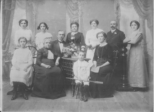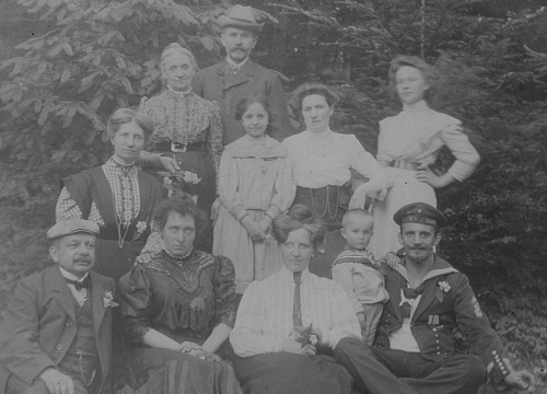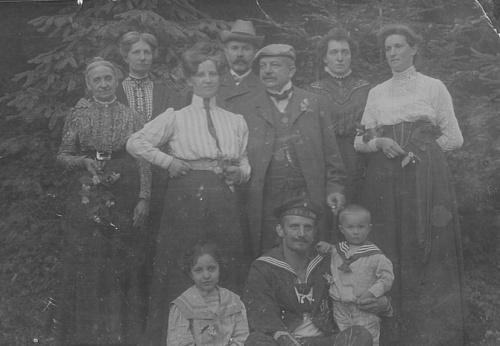 Moja babcia Zofia Tydelska stoi druga z lewek. Pan Gustaw Klukow siedzi po środku nad nim stoi jego żona Zofia z domu Reimmann