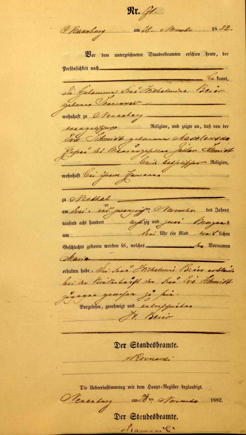 bardzo proszę o tłumaczenie aktu ur. 1882 Nowe, Maria Schmidt