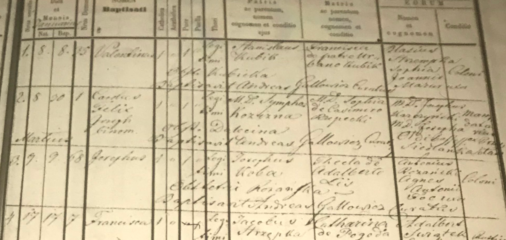chrzestni: MD Józef ? (Josephus) Karczyński oraz MD chyba Józefa, dalej zapis zaczyna się rozmywać i nie potrafię już tego dokładnie odczytać.
