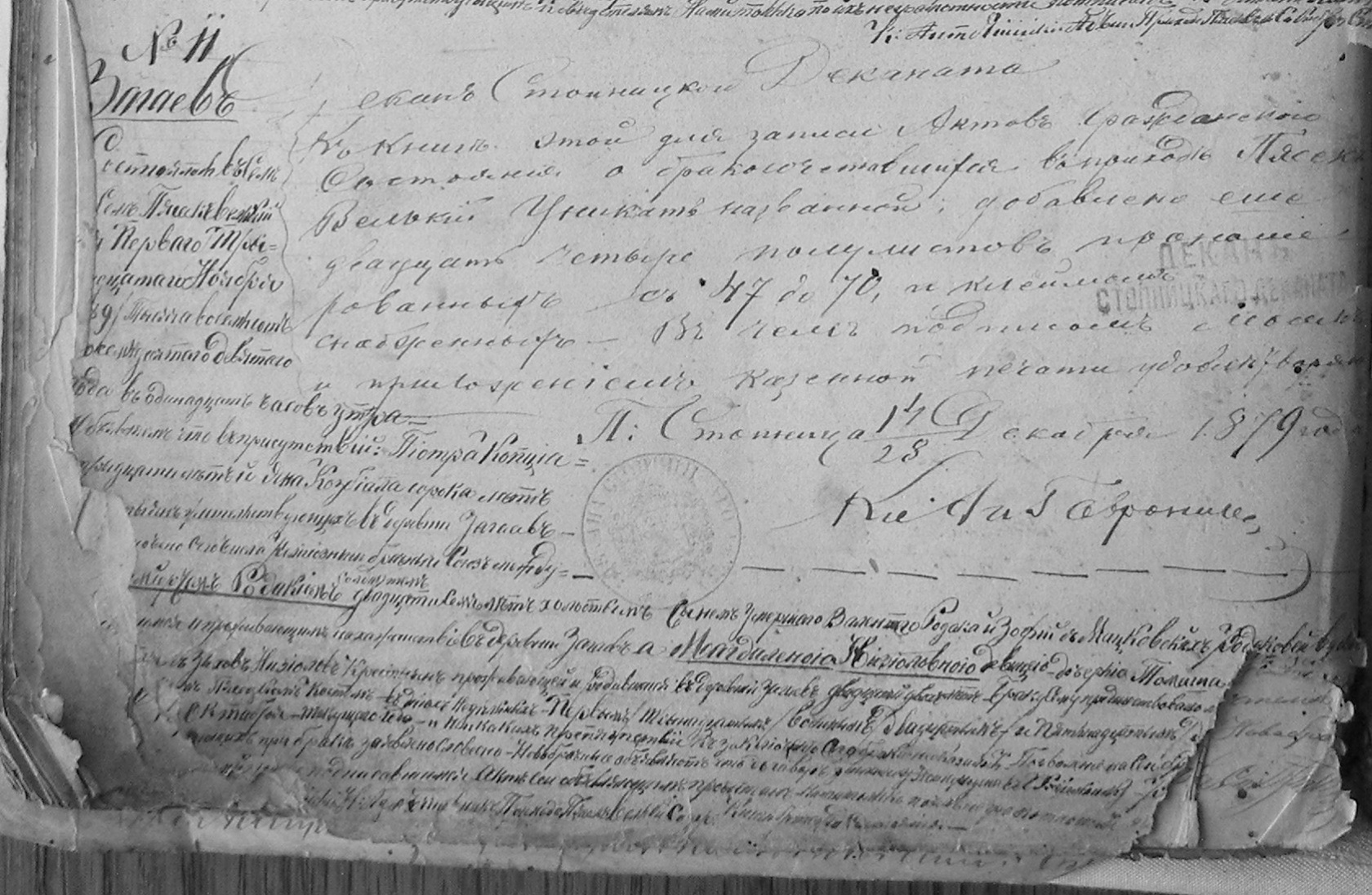 zwracam się z serdeczną prośbą o przetłumaczenie aktu ślubu z języka rosyjskiego. Ślub odbył się w Parafii Piasek Wielki woj. świętokrzyskie w 1889 roku, miejscowość Zagajów.