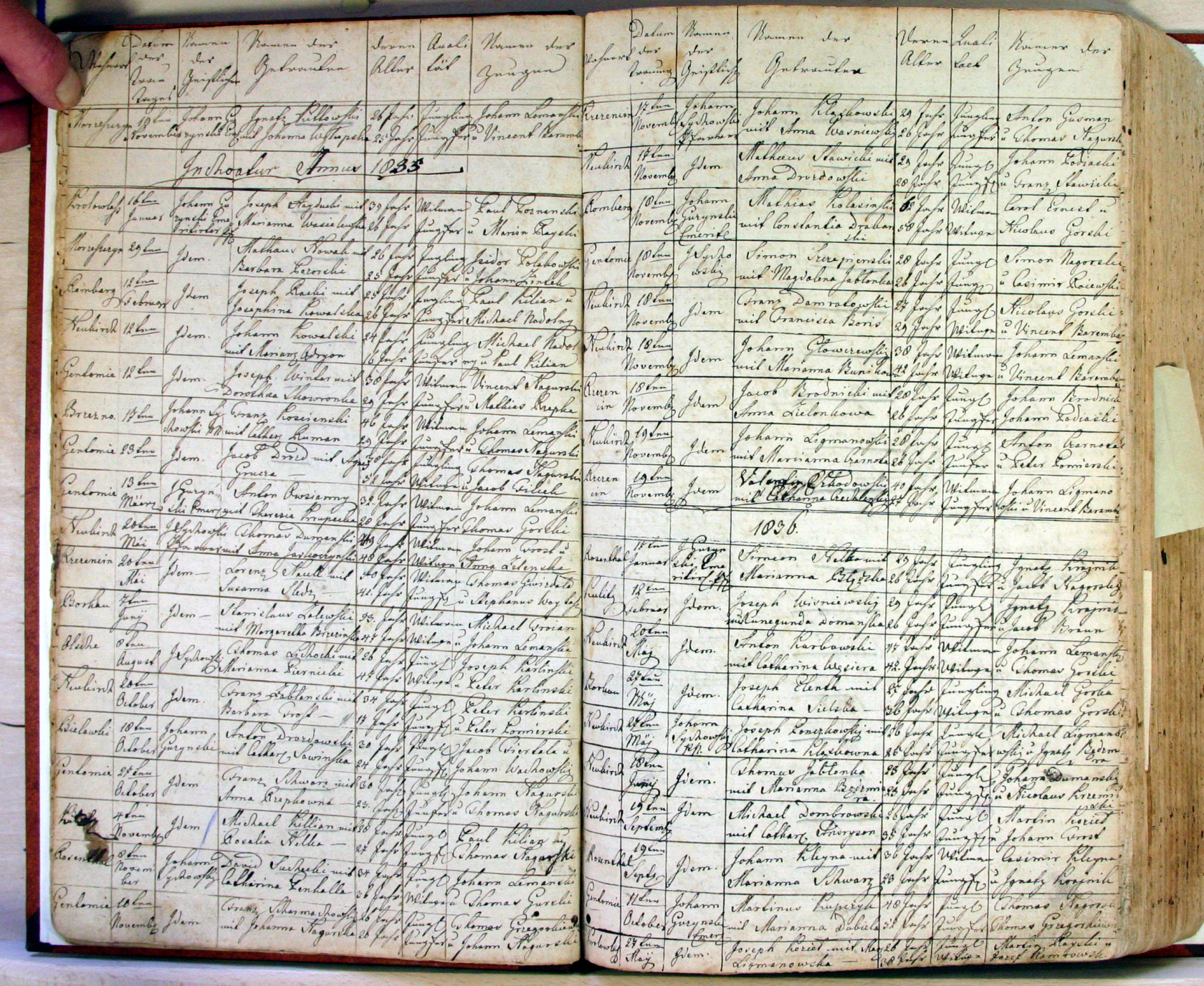Miejsce zaślubin Nowa Cerkiew 13 marca 1835r., pan młody Anton Owsianny lat 32, panna młoda Theresia Krupecka (czasem w innych aktach pisana jako Kruopcka) lat 20. Świadkowie: ??? Johann Leman???? oraz ????? Thomas Górecki.
