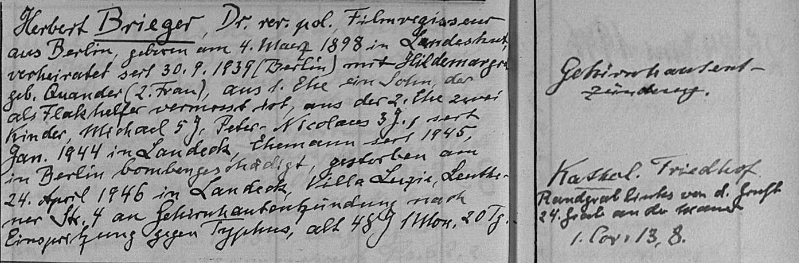 Herbert Brieger, Dr. rer. pol. reżyser filmowy z Berlina, urodzony 4 marca 1898 roku w Landshut (?)